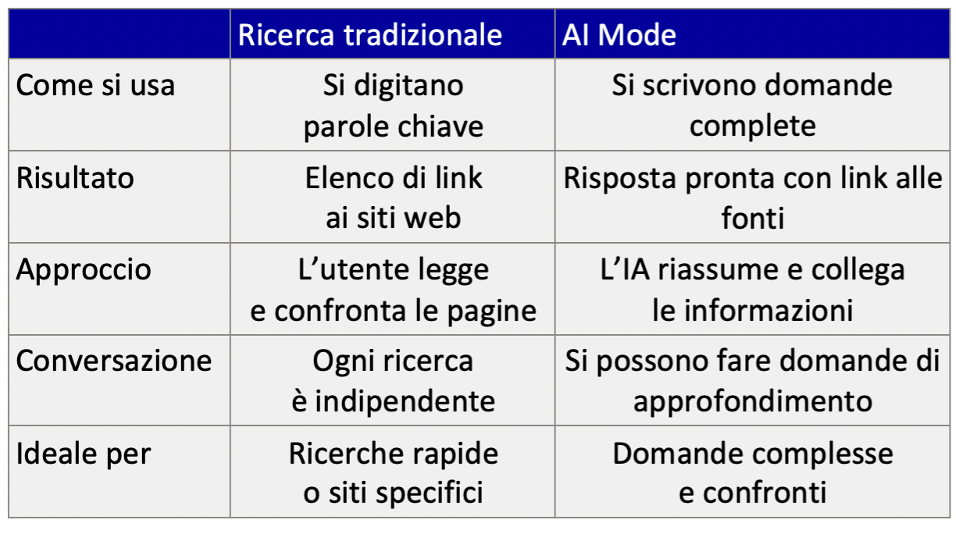 3. Differenze tra AI Mode e la ricerca Google tradizionale