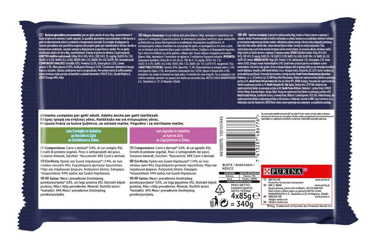 Purina Felix 12480142 Le GHIOTTONERIE per Gatto con coniglio e agnello 4x85 g