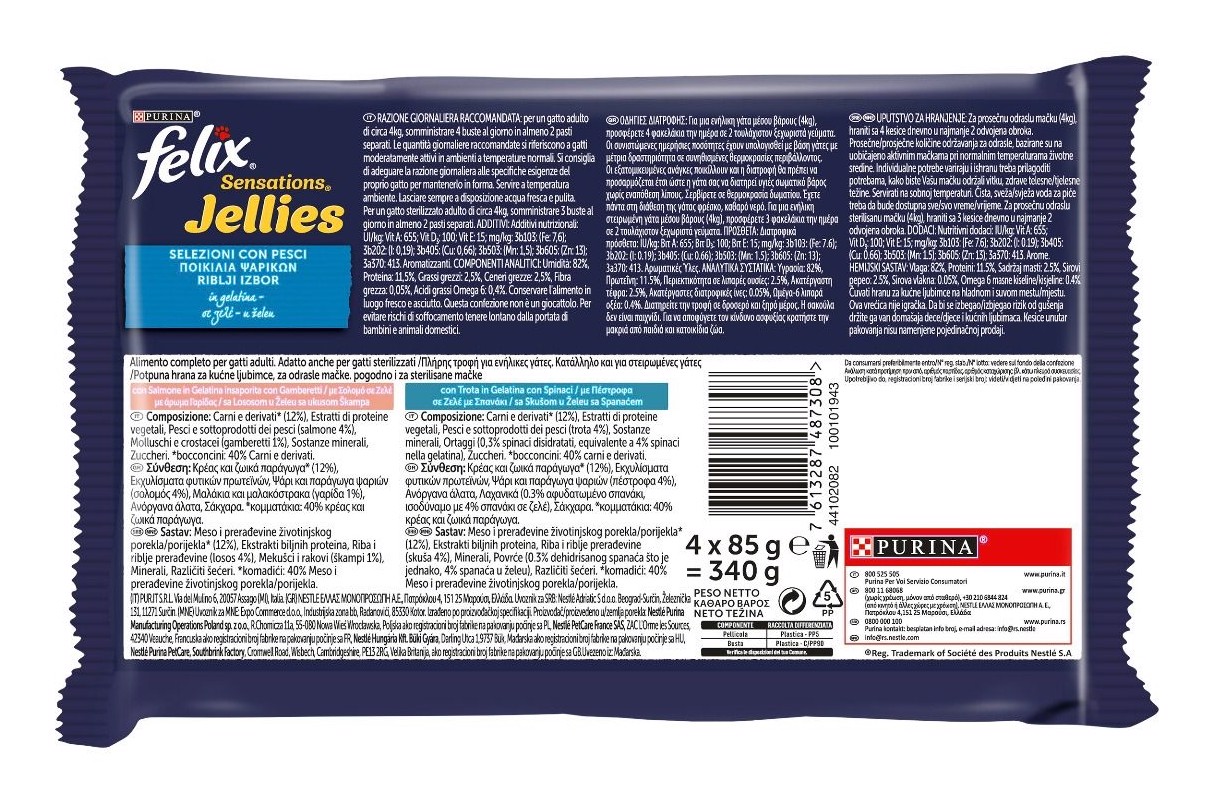 Purina Felix 12480170 Sensations Jellies per gatto Adulto con Salmone e Trota 4x85 g
