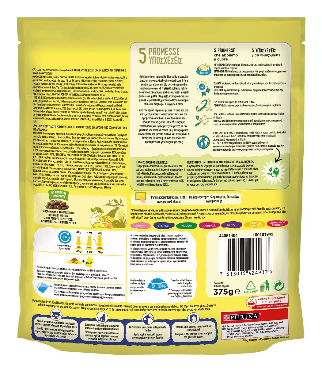 Purina Friskies 12497324 Crocchette per gatto Adulto con un gustoso mix di Salmone, Tonno e Verdure 375 g