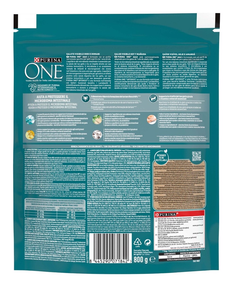 Purina ONE 12505695 Bifensis cibo secco per gatto Adulto Pollo 800 g