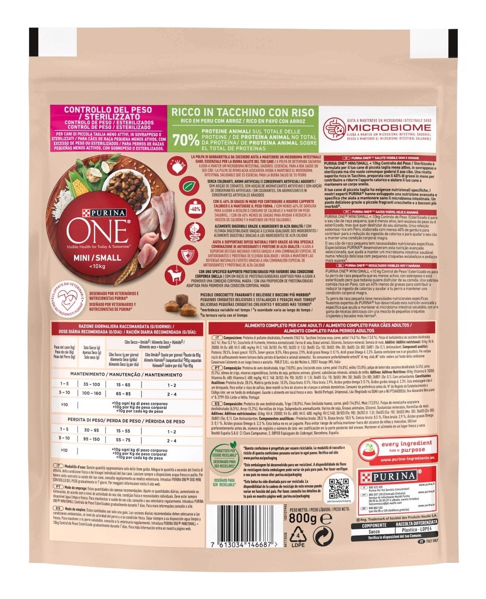 PURINA ONE® MINI/SMALL < 10kg Adult è una ricetta nutriente per cani a partire da 1 anno di età, ricca in Manzo con elevati livelli di antiossidanti per un sistema immunitario forte e nutrienti essenziali per favorire l’igiene orale