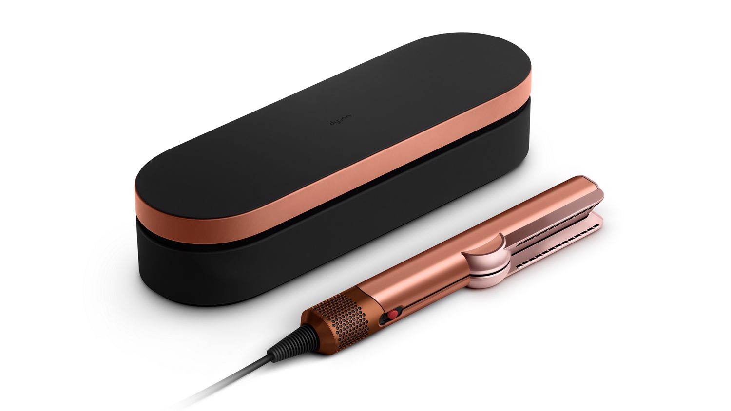 Dyson Airstrait. Tipo: Piastra per capelli, Tecnologia: Vapore, Utilizzo: Capelli bagnati/asciutti. Colore del prodotto: Ambra. Lunghezza cavo: 1,98 m, Tipo di display: LCD. Potenza: 1600 W, Alimentazione: AC, Tensione di ingresso AC: 230 V. Larghezza: 330 mm, Profondità: 41 mm, Altezza: 60 mm
