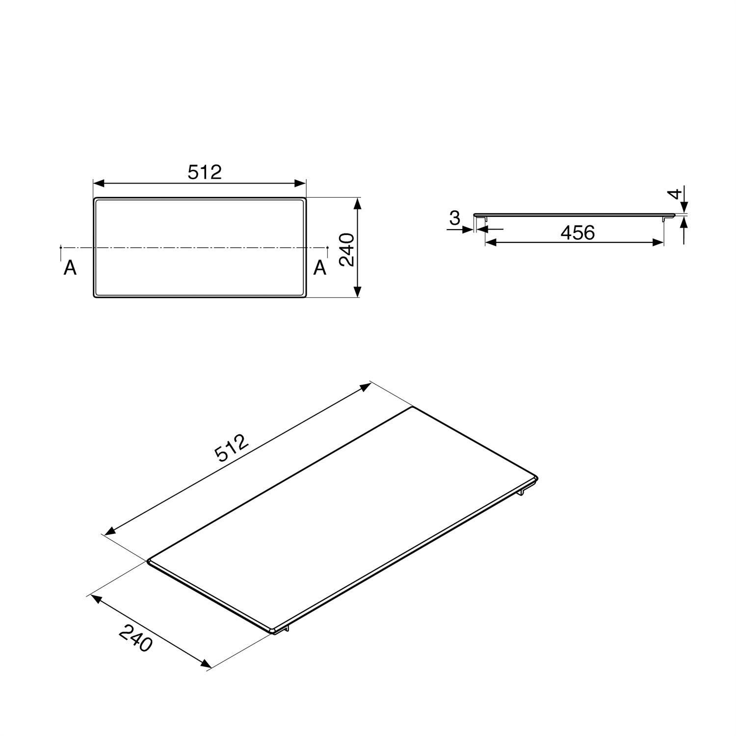 Smeg TVS2. Forma: Rettangolare, Materiali: Vetro, Colore del prodotto: Grigio. Larghezza: 240 mm, Profondità: 512 mm, Altezza: 4 mm. Quantità per pacco: 1 pz