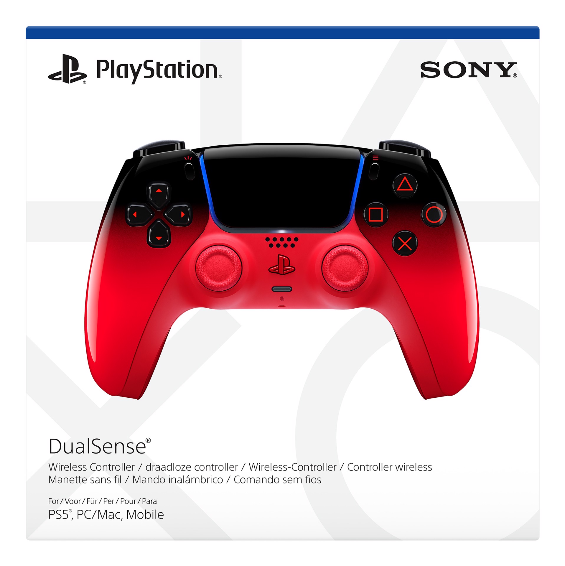 Sony DualSense. Tipo di dispositivo: Gamepad, Piattaforme di gioco supportate: Android, MAC, PC, PlayStation 5, iOS, Tasti funzione per il controllo del gioco: D-pad, Tasto Home, Pulsante Opzioni, Pulsante Condividi. Tecnologia di connessione: Con cavo e senza cavo, Interfaccia dispositivo: Bluetooth/USB, Connettore USB: USB tipo-C. Colore del prodotto: Rosso, Indicatori LED: Livello della batteria, Carica, status, Compatibilità: PS5 Console PS5 Pro Console PC/Mac Mobile devices. Alimentazione: Batteria, Tipo batteria: Da Incasso, Tecnologia batteria: Ioni di Litio. Larghezza: 160 mm, Profondità: 106 mm, Altezza: 66 mm