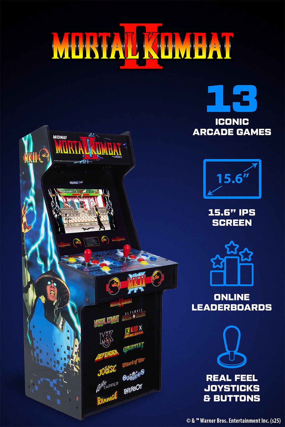 MKB-A-405729, Armadio per sala giochi verticale, 39,6 cm (15.6"), Mortal Kombat, Mortal Kombat II, Mortal Kombat 3, Ultimate MK 3, Rampage, Joust, Wizard of Wor,..., 482,6 mm, 457,2 mm, 1153,2 mm