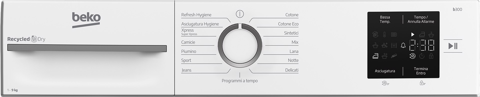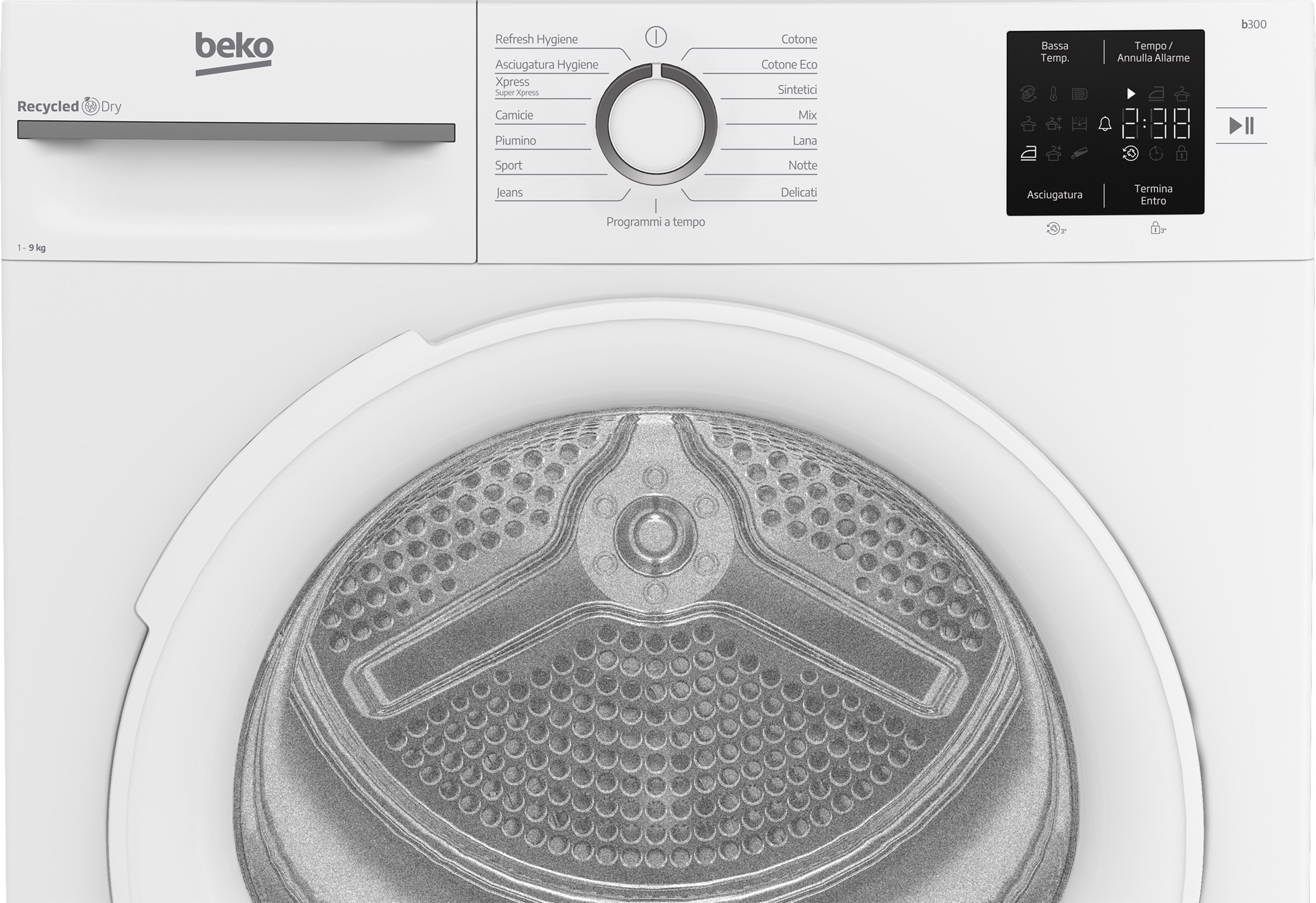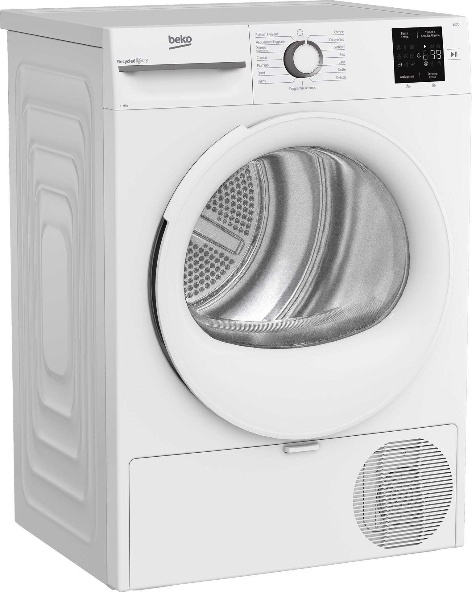 BEKO BMT491WI_IT, Asciugatrice 9kg, Classe C, Linea Estetica NX, motore inverter, Display digitale, colore Bianco, oblo Bianco