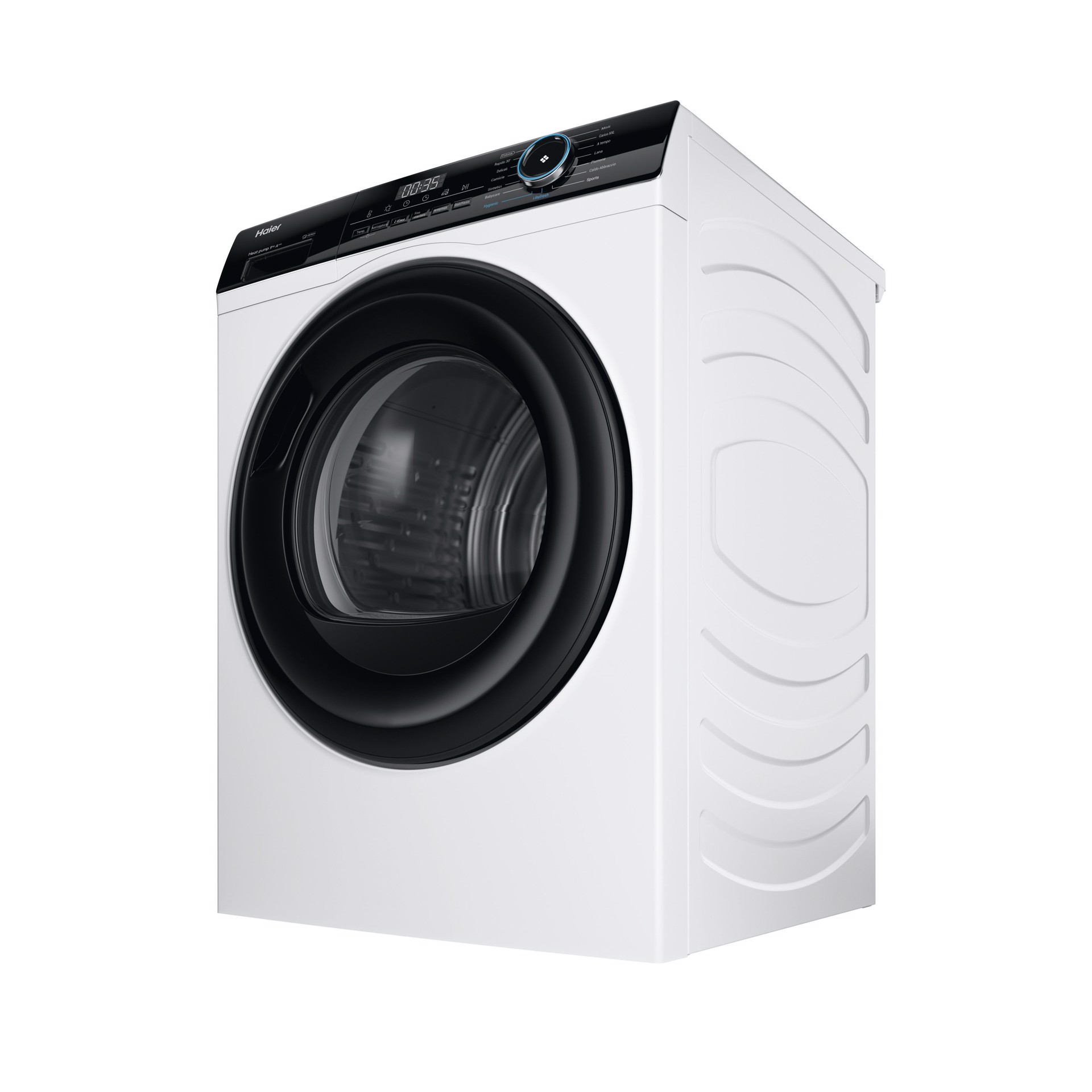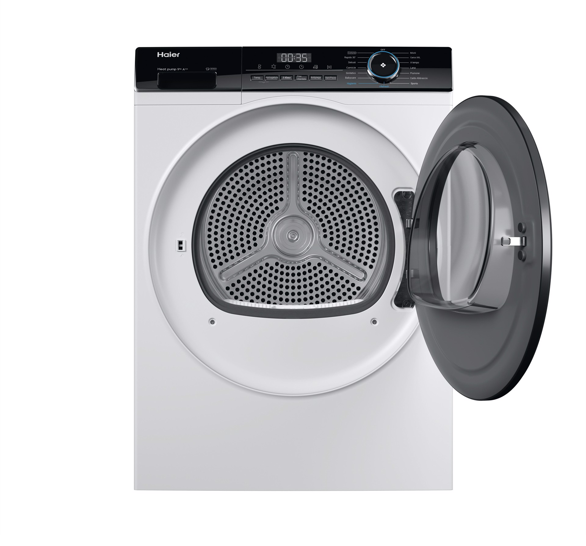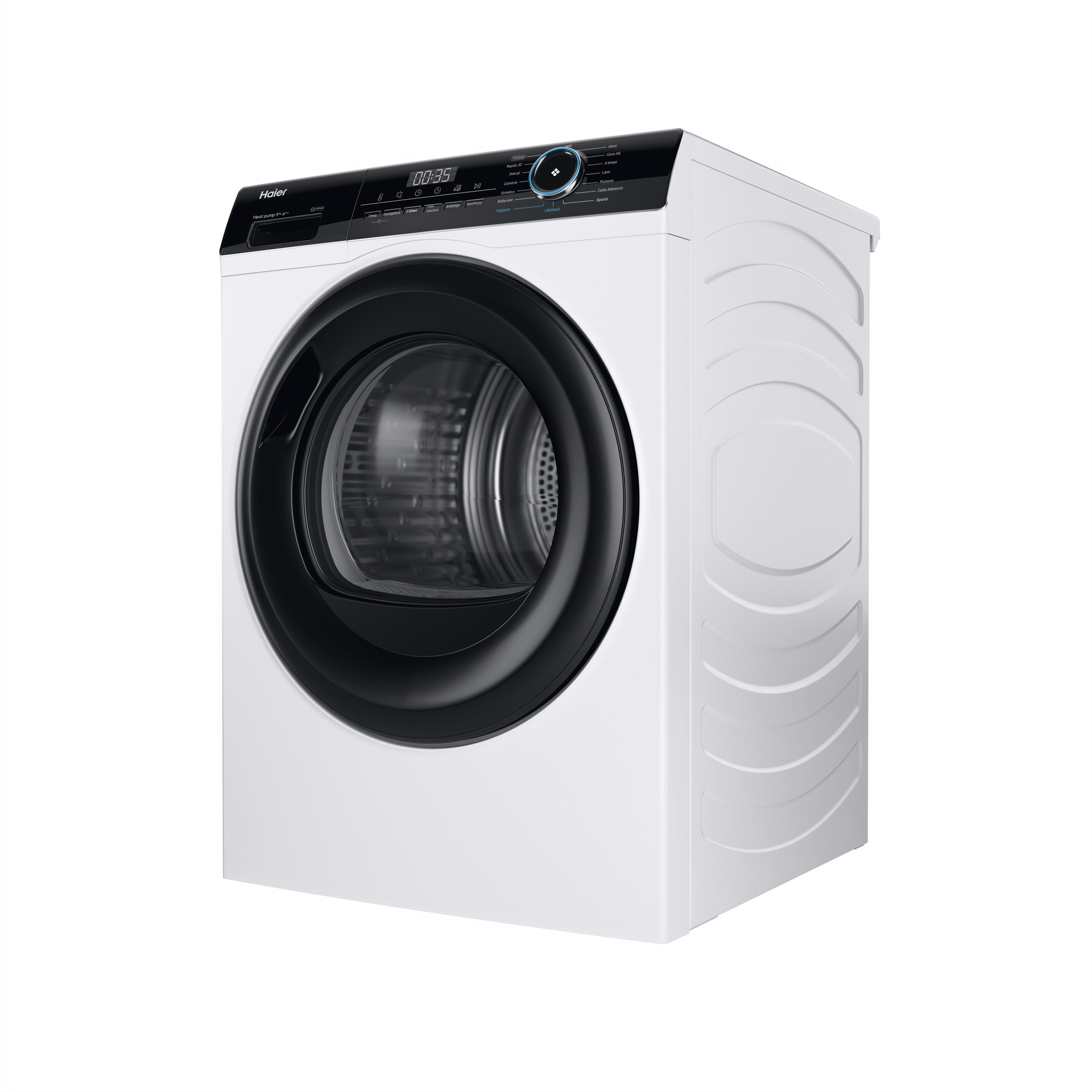 HD90-A3939, Libera installazione, Caricamento frontale, Pompa di calore, Bianco, Pulsanti, Manopola, Destra
