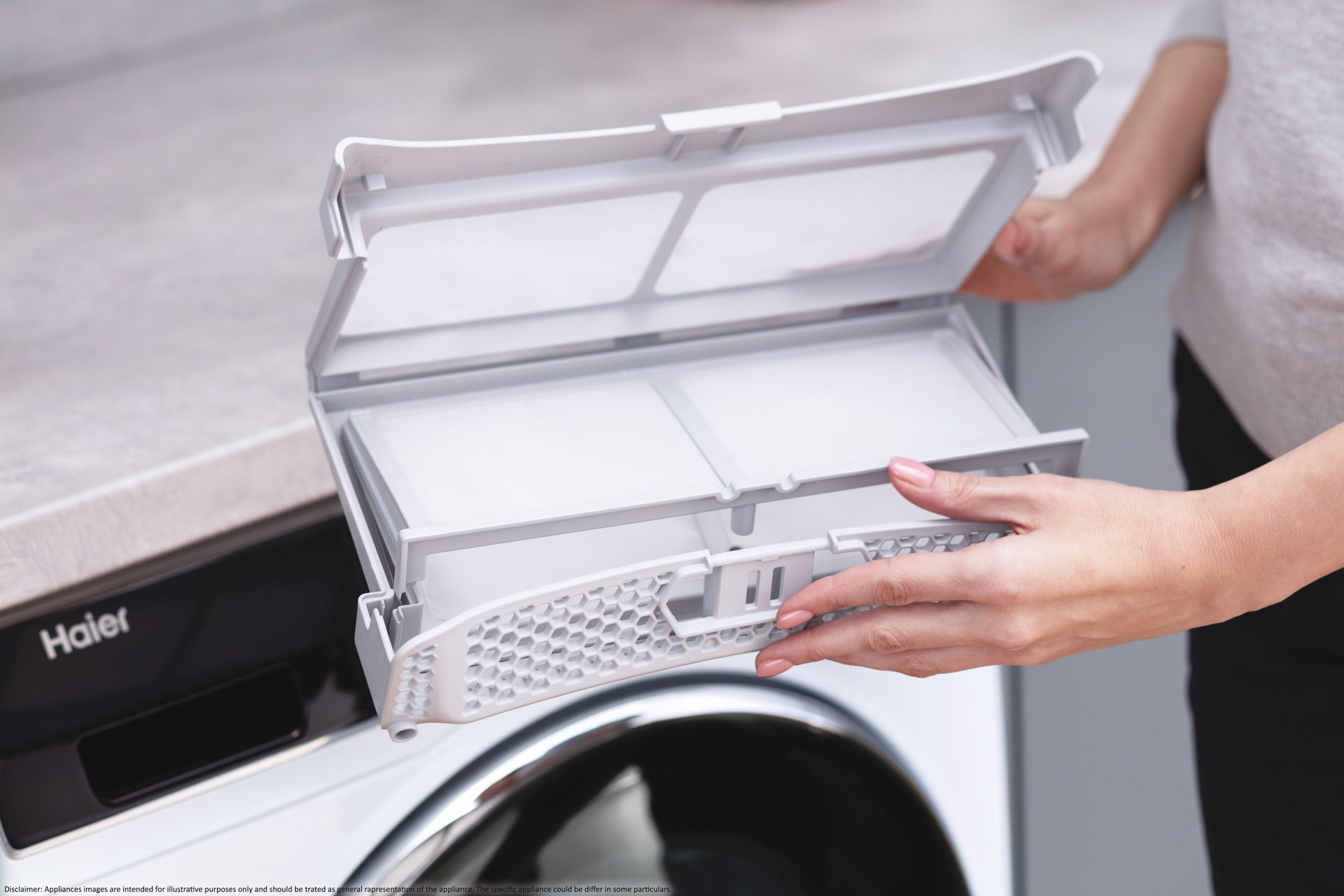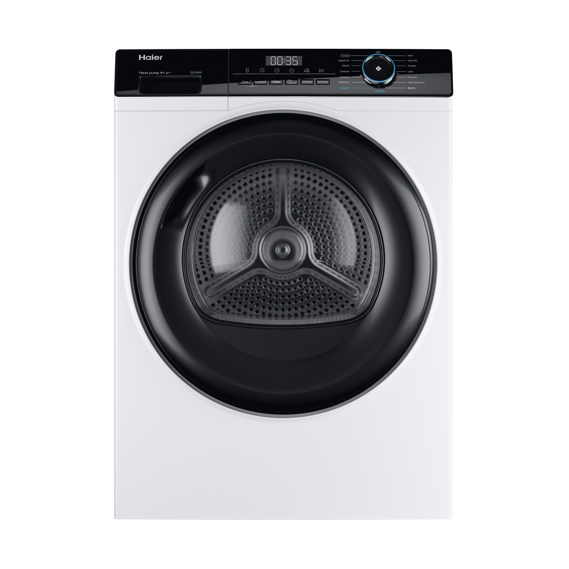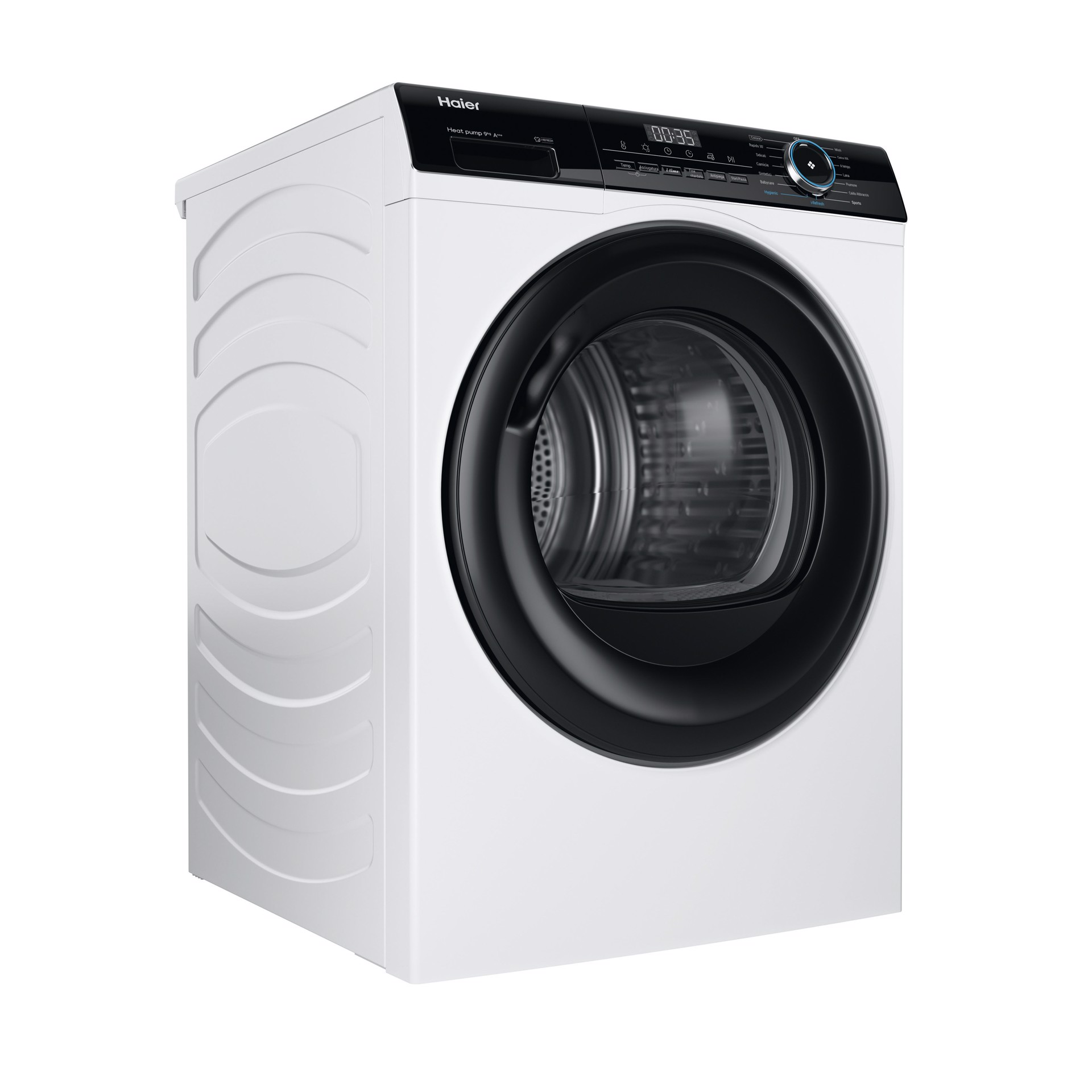 HD90-A3939, Libera installazione, Caricamento frontale, Pompa di calore, Bianco, Pulsanti, Manopola, Destra