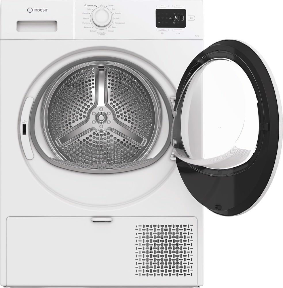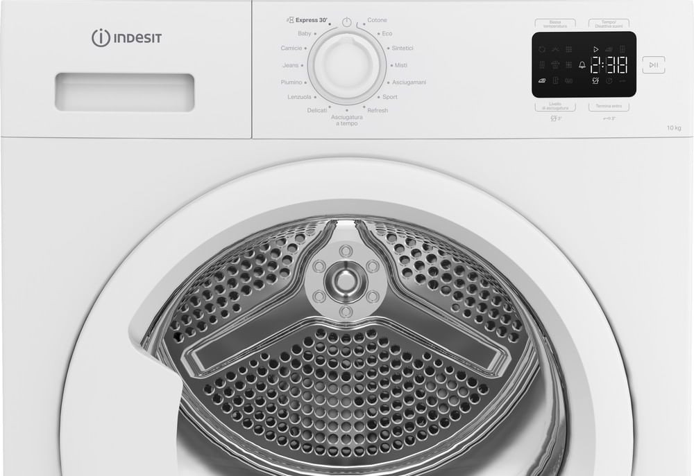 Caratteristiche di questa asciugatrice a libera installazione Indesit: cestello essenziale da 10,0 kg.