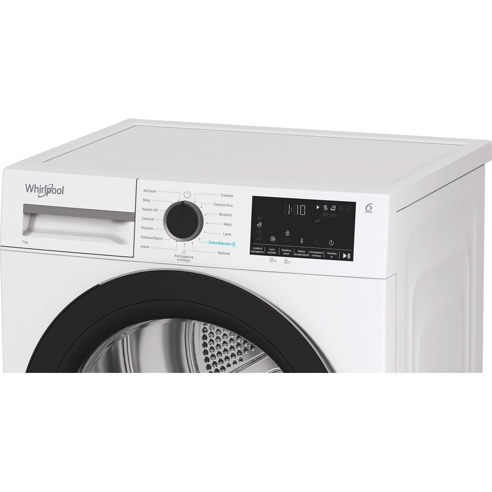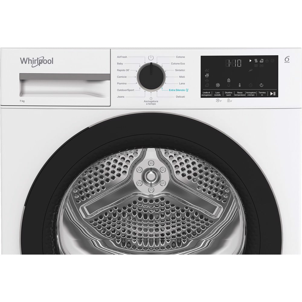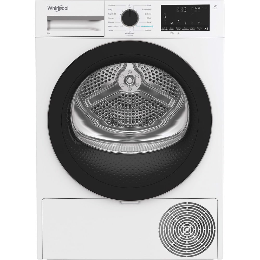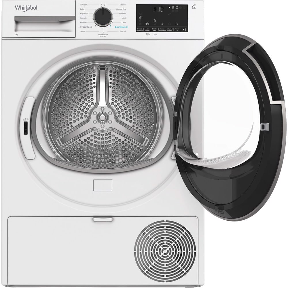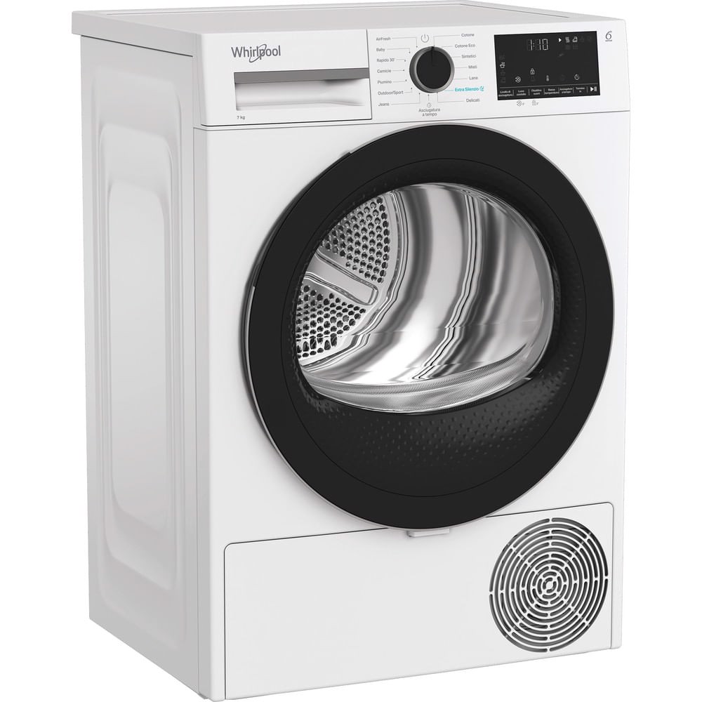 Caratteristiche di questa asciugatrice a libera installazione Whirlpool: cestello spazioso da 7,0 kg. Esclusiva tecnologia 6° SENSO che monitora costantemente il livello di umidità nel tamburo per proteggere i tuoi vestiti e garantire un'asciugatura perfetta. Funzione di connessione che consente all'elettrodomestico di ricevere informazioni riguardo il ciclo di lavaggio utilizzato e regolare le impostazioni di conseguenza per risultati perfetti. Sportello dal design elegante con schermo di sicurezza. Tecnologia a pompa di calore riscalda efficacemente l’aria nell'elettrodomestico, riducendo significativamente il consumo energetico.