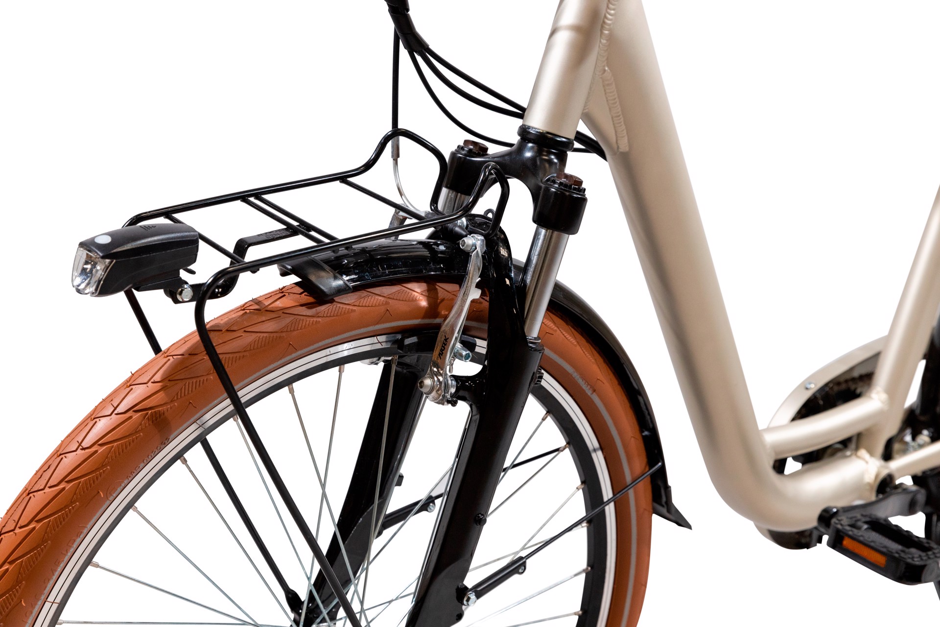 EMG Bici Elettrica City-bike vintage Audrey con ruota da 26", freni V-brake, motore 250W batteria ultra slim 13Ah, cambio Shimano