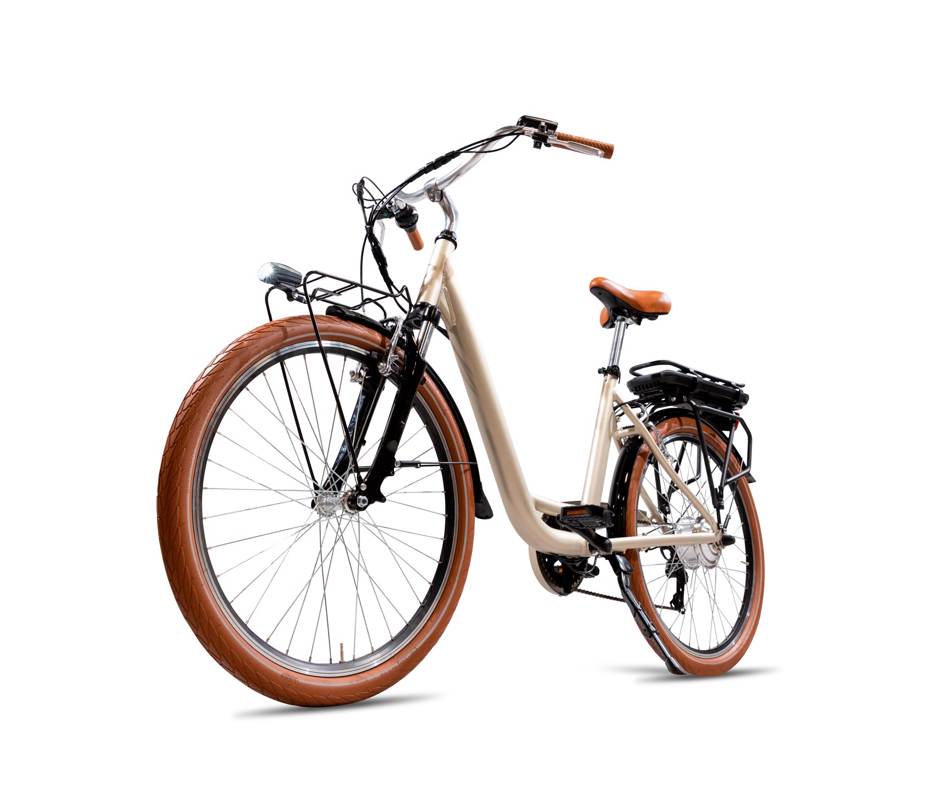 Una e-bike moderna con un tocco vintage, ecco come racchiudere in poche parole l’essenza del modello Audrey. Ideale per chi è alla ricerca di una bicicletta alla moda ed affidabile, è dotata di telaio in alluminio da 17” dai tratti full vintage leggero ma robusto, caratteristica che rende la bici di EMG maneggevole e resistente. Le ruote da 26” con banda catarifrangente offrono stabilità ed un’ottima tenuta di strada, mentre i freni V-Brake supportano una frenata potente e precisa; il cambio Shimano RS-36 permette un cambio fluido e preciso, agevolando la pedalata e le ottime performance del motore da 250W. Per concludere, la batteria al litio ultra slim 36V 10Ah è l’ideale per i percorsi più lunghi ed arriva a sostenere un’autonomia di circa 80 km* con una sola carica. Abbiamo immaginato la bicicletta elettrica EMG Audrey come un mezzo di trasporto da utilizzare tutti i giorni per pedalare senza sforzo e con un tocco di classe. Che ne dici, la vuoi provare? *Velocità massima e autonomia dipendono dallo stile di guida, dal peso del guidatore, dalle condizioni del manto stradale e dalla velocità mantenuta durante l’utilizzo.
