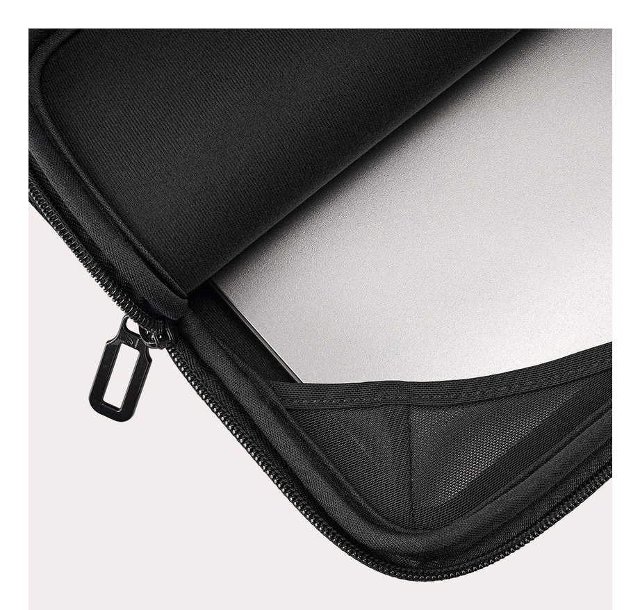 Custodia in neoprene con motivo a righe, progettata per laptop e MacBook. La struttura da 4 mm garantisce un’eccellente protezione, mantenendo un profilo ultra-sottile grazie alle cuciture Flat-lock. Dotata di Anti-Slip System®, un inserto elastico che previene graffi e scivolamenti. Il bordo protettivo interno offre una protezione aggiuntiva, mentre la zip con doppio tiretto facilita l’apertura. Il logo, stampato su un’etichetta in nastro cucita centralmente, aggiunge un tocco di design distintivo e di personalità. Realizzata in parte con plastica riciclata.