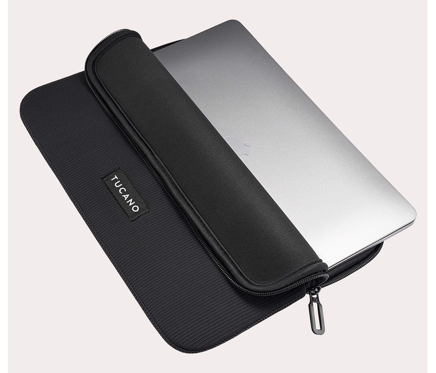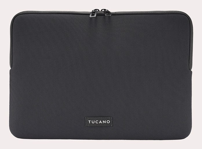 Custodia in neoprene con motivo a righe, progettata per laptop e MacBook. La struttura da 4 mm garantisce un’eccellente protezione, mantenendo un profilo ultra-sottile grazie alle cuciture Flat-lock. Dotata di Anti-Slip System®, un inserto elastico che previene graffi e scivolamenti. Il bordo protettivo interno offre una protezione aggiuntiva, mentre la zip con doppio tiretto facilita l’apertura. Il logo, stampato su un’etichetta in nastro cucita centralmente, aggiunge un tocco di design distintivo e di personalità. Realizzata in parte con plastica riciclata.