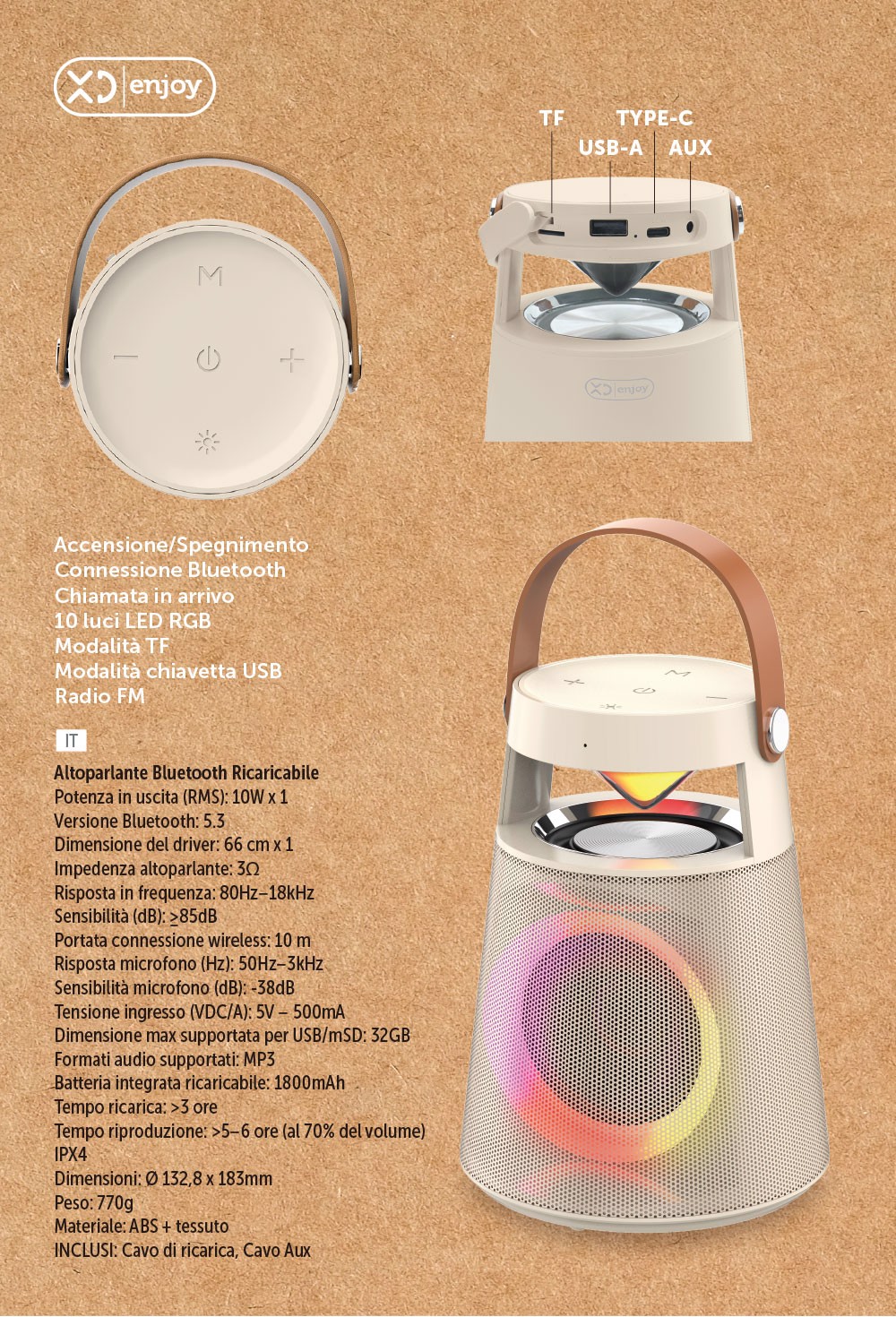 XD Enjoy Altoparlante Bluetooth Ricaricabile Portatile