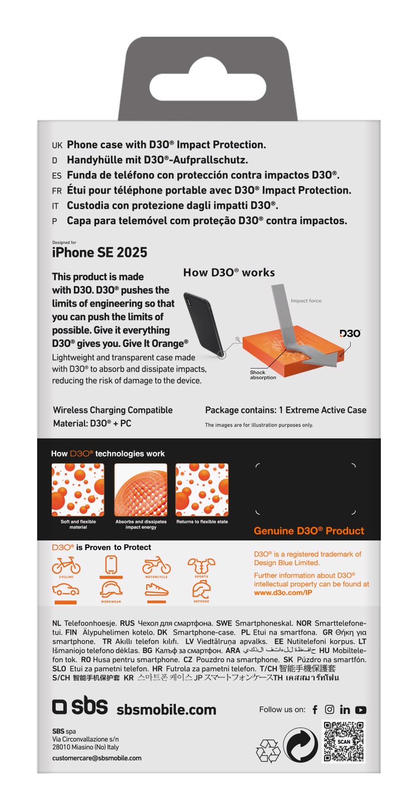 Questa custodia, grazie al materiale D3O che sostituisce il TPU tradizionale, combina trasparenza ed eleganza mantenendo lo spessore di una custodia SBS standard. Ciò consente di utilizzare l'iPhone in maniera agile e comoda, senza aumentarne l'ingombro. Nonostante la sua elevata capacità protettiva, la custodia si distingue per la sua leggerezza, mantenendo morbidezza al tatto.