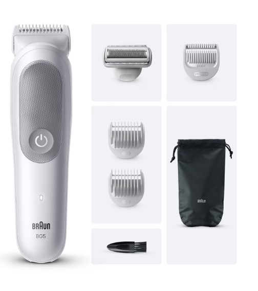 Braun Series 5 BG5550. Colore del prodotto: Grigio, Accessori per la cura del corpo: Rifinitore per corpo. Alimentazione: Batteria, Tecnologia batteria: Ioni di Litio, Tipo batteria: Batteria integrata. Larghezza: 42 mm, Profondità: 41 mm, Altezza: 156 mm. Larghezza imballo: 105 mm, Profondità imballo: 60 mm, Altezza imballo: 252 mm