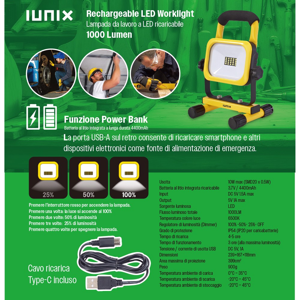 IUNIQ Lampada da lavoro a LED ricaricabile