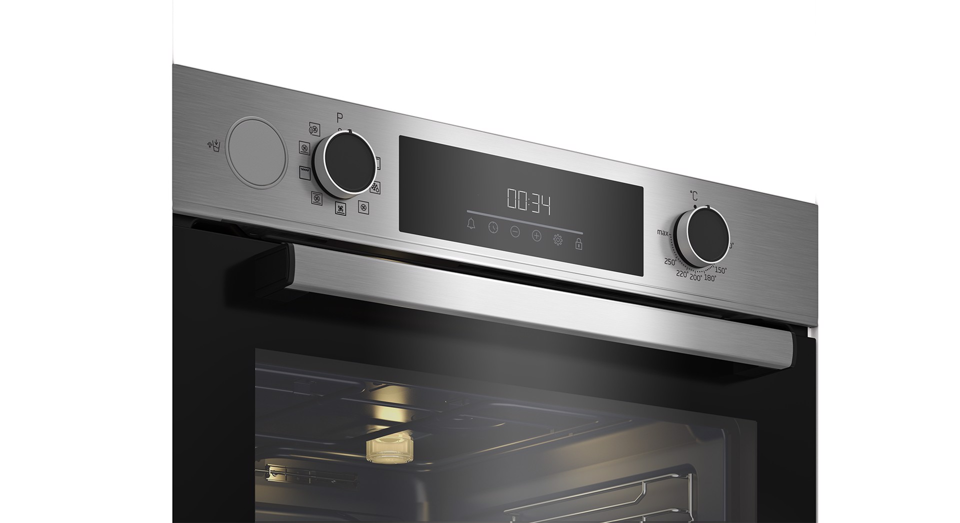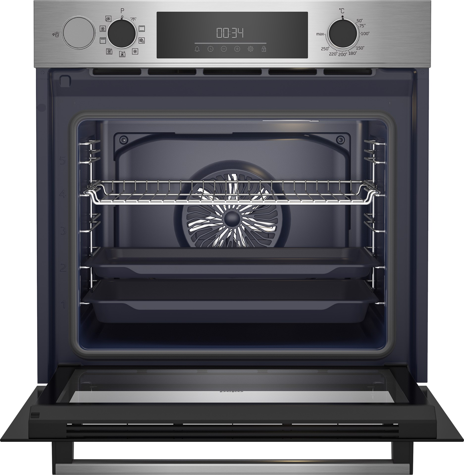 Beko BBIS12300XDE. Dimensione del forno: Media, Tipo di forno: Forno elettrico, Capacità interna forno totale: 72 L. Posizionamento dell'apparecchio: Da incasso, Colore del prodotto: Acciaio inossidabile, Tipo di controllo: Pulsanti, Manopola, Touch. Tipo di orologio: Elettronico, Tipo di timer: Digitale, Modalità di impostazione del timer: Timer. Classe efficienza energetica: A+, Consumo energetico (convenzionale): 0,95 kWh, Consumo energetico (convezione forzata): 0,69 kWh. Tipo di lampada: Alogena