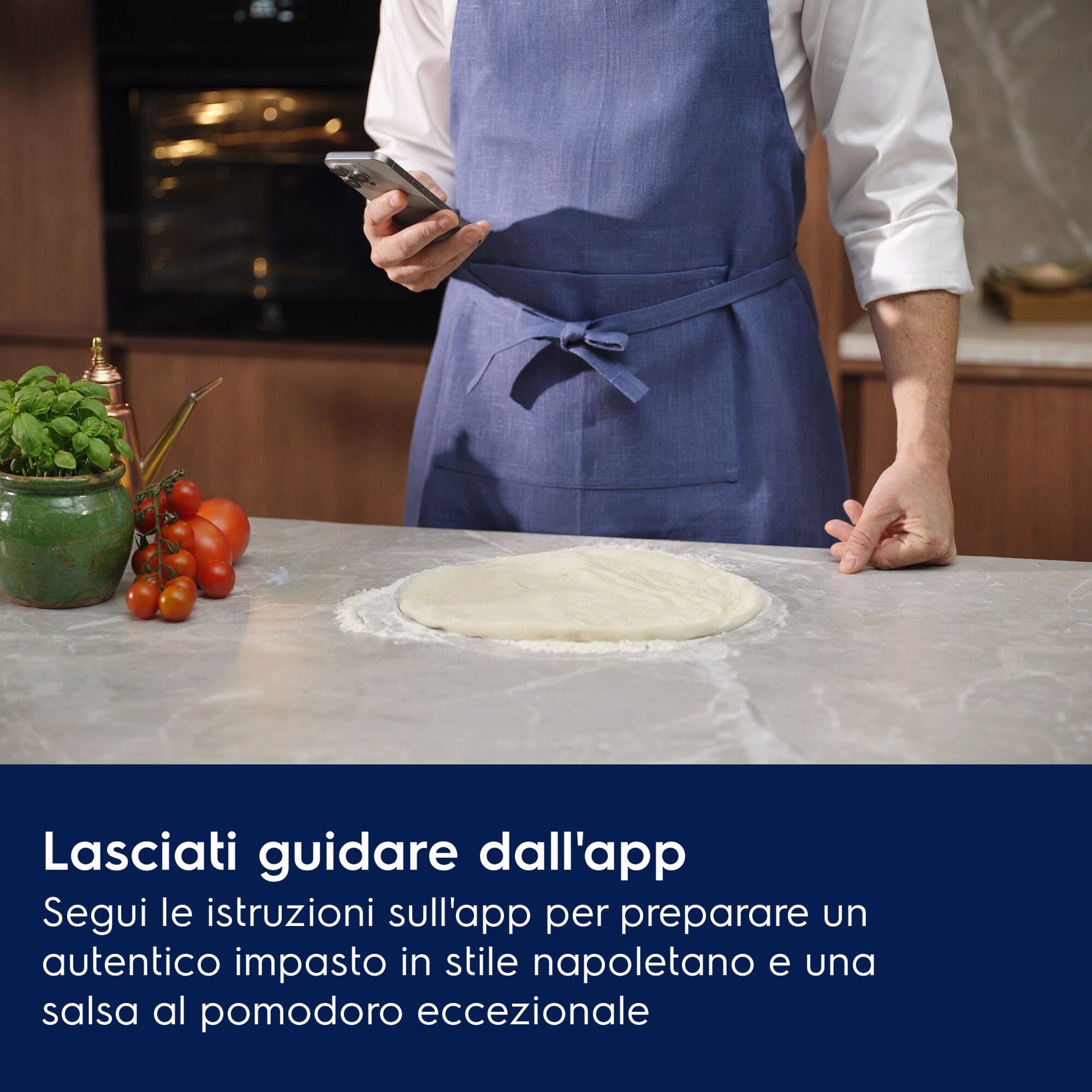 Grazie alle istruzioni dettagliate che trovi sull'app, potrai preparare un autentico impasto come in pizzeria. Trovi anche la ricetta per la salsa al pomodoro e alcune idee per pizze sfiziose.