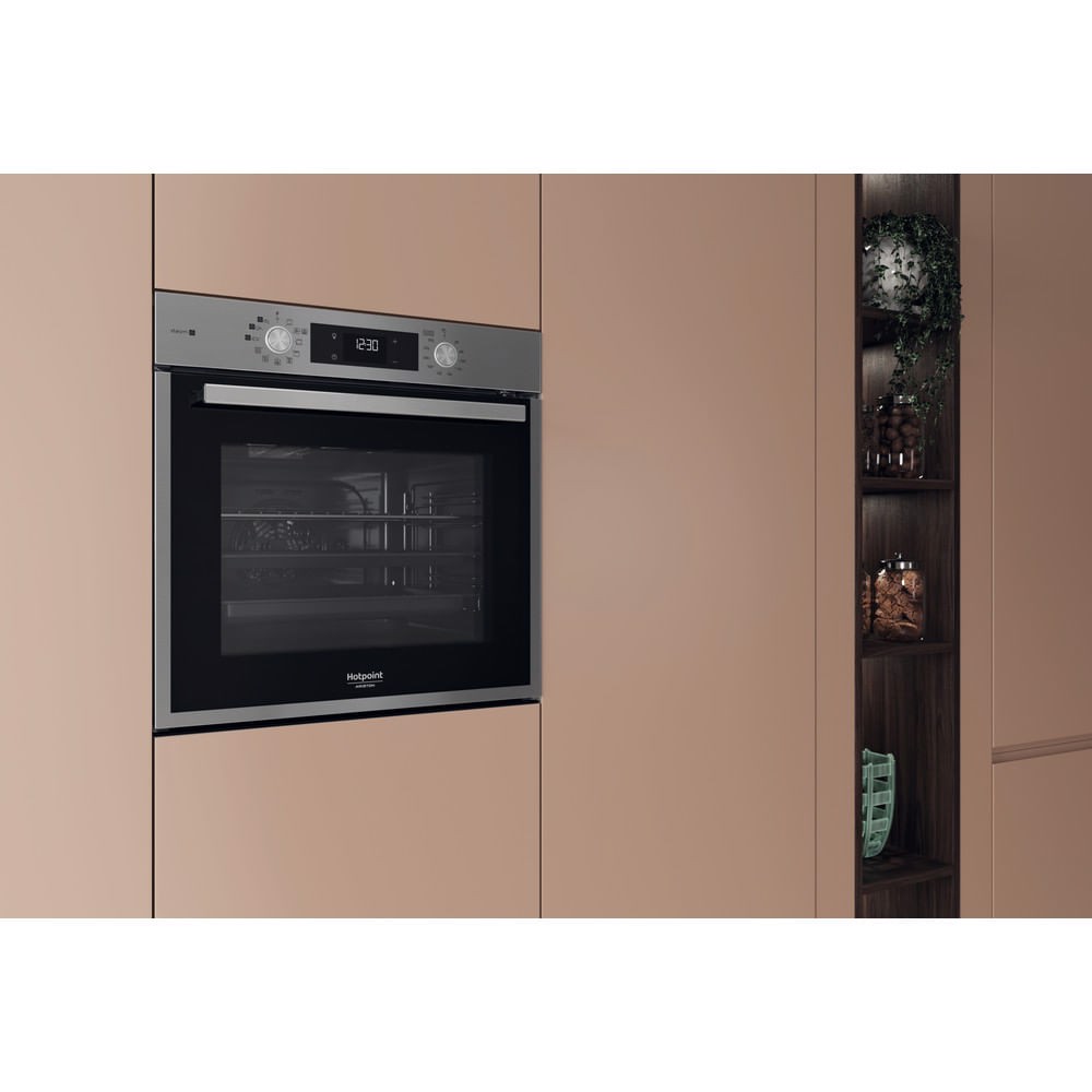 Caratteristiche di questo forno da incasso Hotpoint Ariston: tecnologia elettrica avanzata per cucinare risparmiando energia.