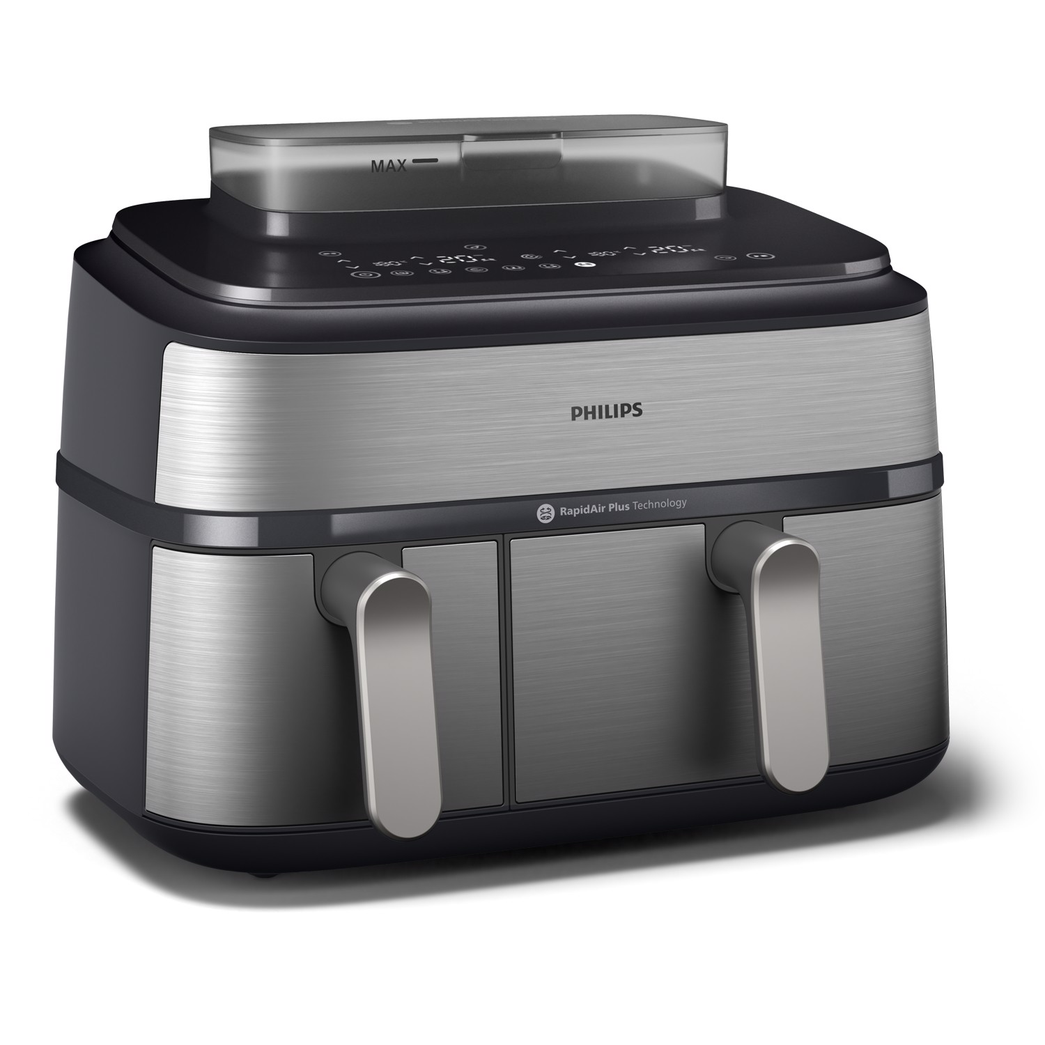 Serie 5000 Airfryer doppio cestello con vapore, Friggitrice ad aria da 9.0L, 19 metodi di cottura, Pulizia cestello automatica, App ricette, NA555/00, Friggitrice ad aria calda, 9 L, 1,4 kg, Rapid Air, 40 °C, 200 °C