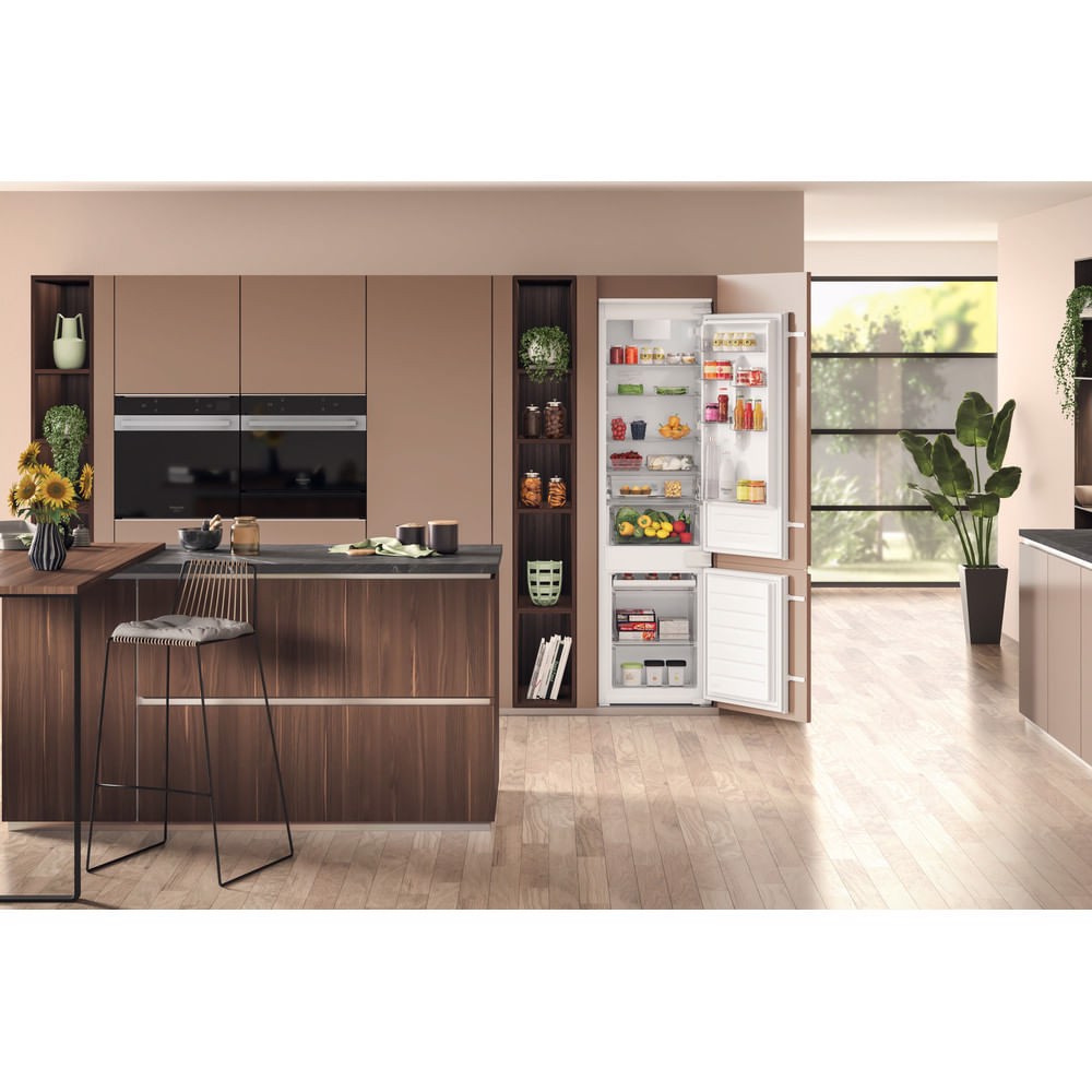 Caratteristiche di questo frigorifero combinato da incasso Hotpoint Ariston: modello alto e capiente, adatto per le esigenze di tutta la famiglia. Colore bianco. Ripiani in vetro, robusti ed eleganti al tempo stesso. Flusso d’aria regolare e uniforme all’interno dell'elettrodomestico, per una ventilazione potenziata. Comodo porta-bottiglie per conservare le bottiglie con sicurezza.