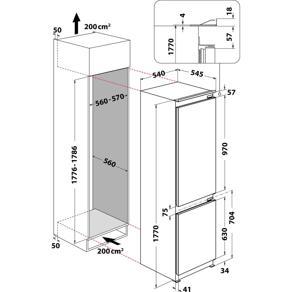 Frigorifero combinato da incasso - WHC18D011A2, 268 L, SN-T, 9 kg/24h, D, Compartimento zona fresca, Bianco