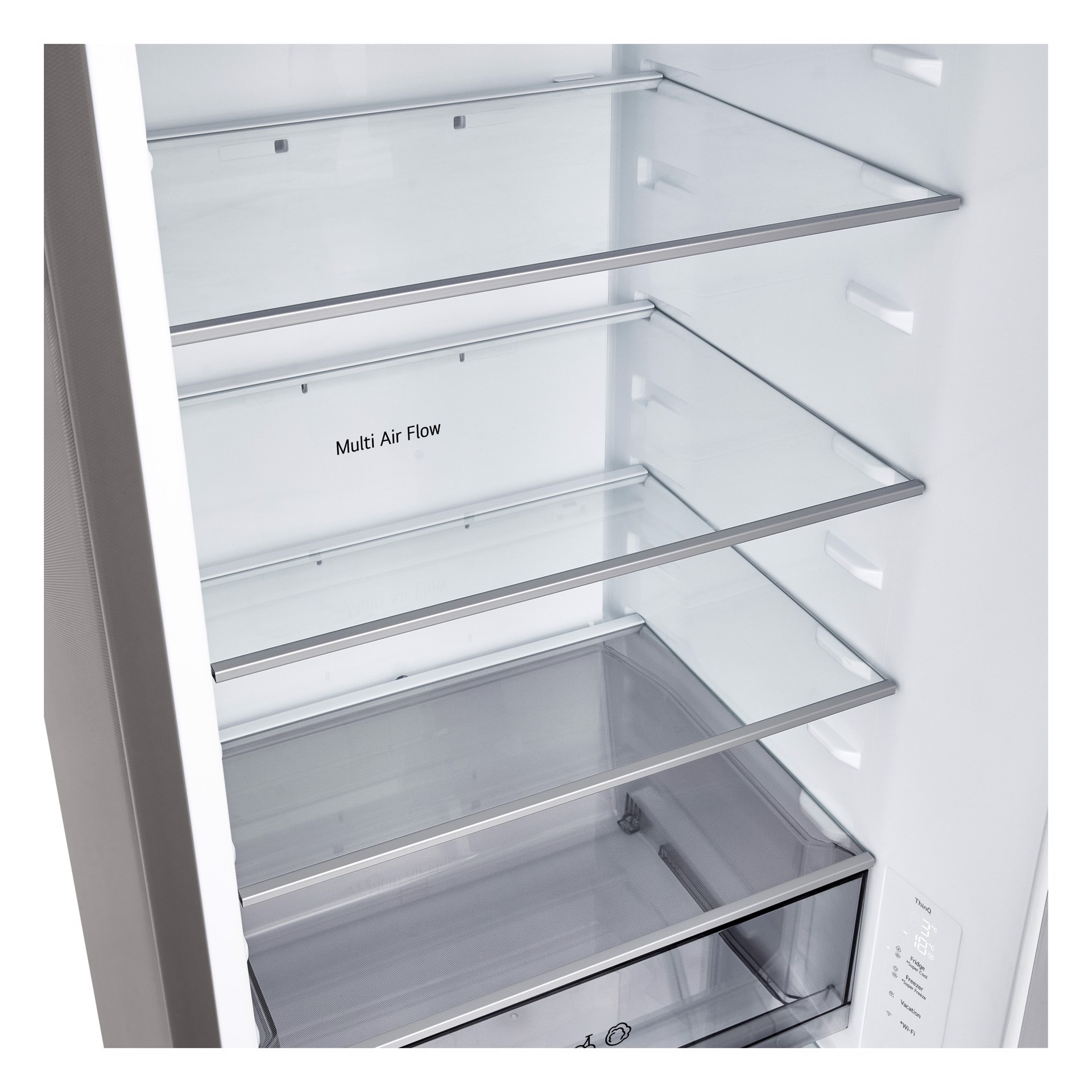 LG GBBSJ20DPY. Capacità netta totale: 375 L. Cerniera porta: Destra, Tipo di display: LED. Classe climatica: T, Emissione acustica: 35 dB. Capacità netta frigorifero: 262 L, No Frost (frigorifero), Sistema Multi-Airflow (frigorifero), Luce interna. Capacità netta congelatore: 113 L, Capacità di congelamento: 10 kg/24h, No Frost (congelatore). Compartimento zona fresca. Classe efficienza energetica: D, Consumo energetico annuo: 210 kWh
