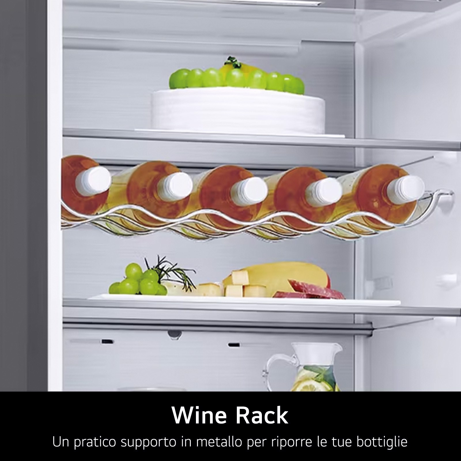 Se sei amante del vino e a casa tua non mancano mai delle bottiglie in fresco, il Wine Rack è un accessorio irrinunciabile. Si tratta di un supporto in metallo sagomato per organizzare e tenere in fresco fino a 5 bottiglie di vino, disposte parallelamente agli altri ripiani. Il supporto per le bottiglie è rimovibile qualora ti servisse più spazio all'interno del frigorifero.