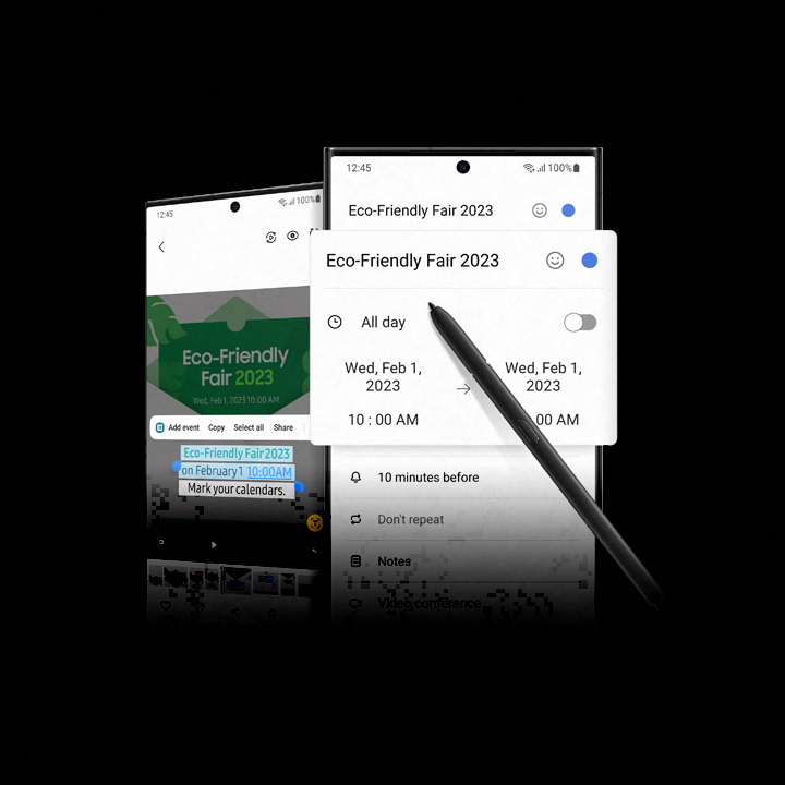 Ogni penna può scrivere parole, ma la S Pen può catturarle. Evidenzia informazioni di un evento da un poster o video, poi salvale direttamente a calendario con un semplice tocco. 4