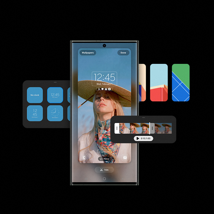 Ora impostare il telefono per le tue esigenze è più facile che mai. One UI amplifica al massimo la personalizzazione, consentendoti di scegliere quasi ogni dettaglio, dalle schermate di blocco e i temi, ai widget e le notifiche.