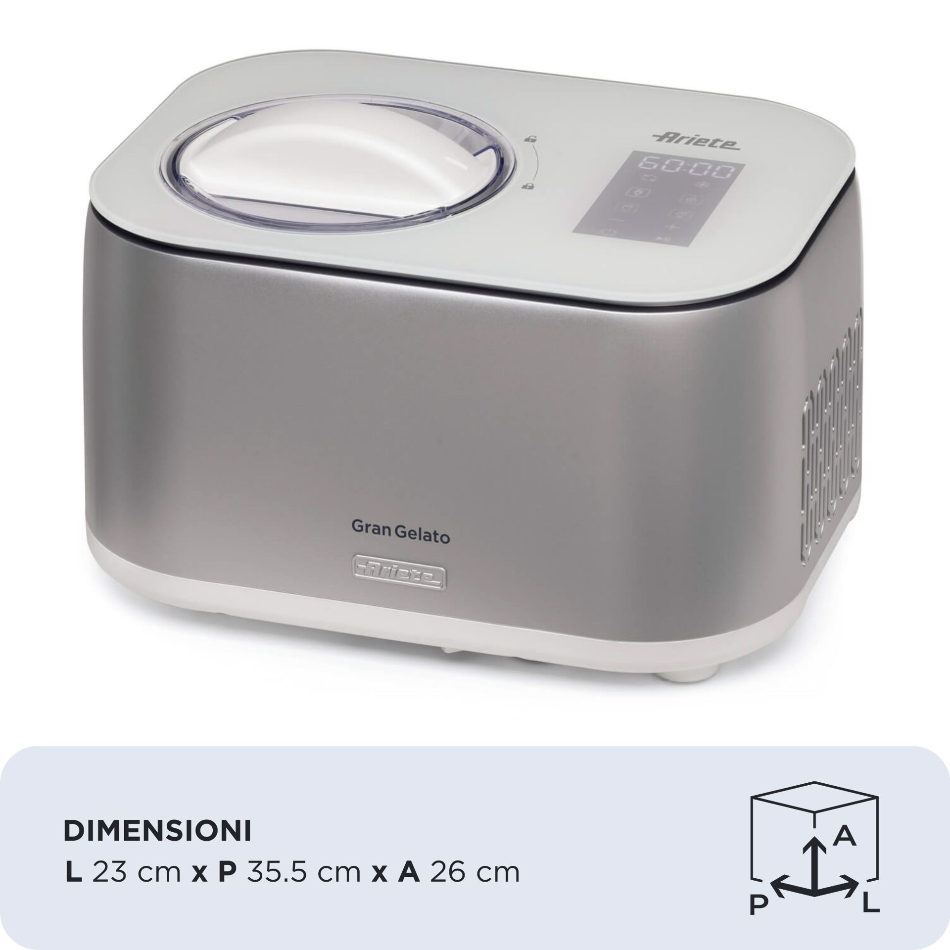 ARIETE 644 Gran Gelato 4in1, Gelatiera con compressore, Gelato, Yogurt, Sorbetto e Granita, 30-60 minuti, Funzione mantenimento del freddo