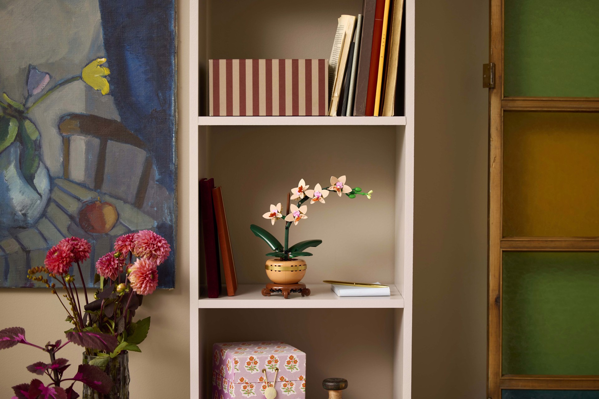 Display floreale: lascia sbocciare la creatività con il kit costruibile Mini-orchidea LEGO® Botanicals per adulti, che consente ai fioristi in erba di creare ed esporre un fiore LEGO