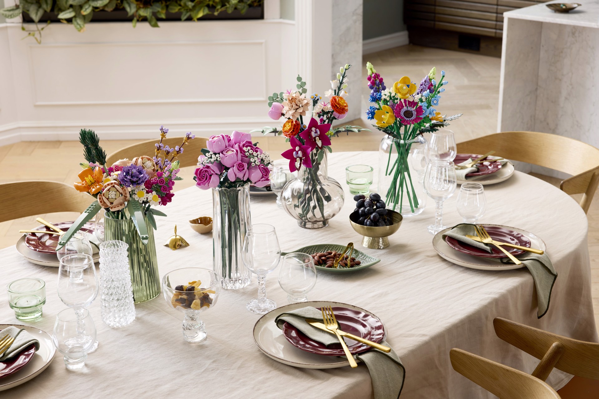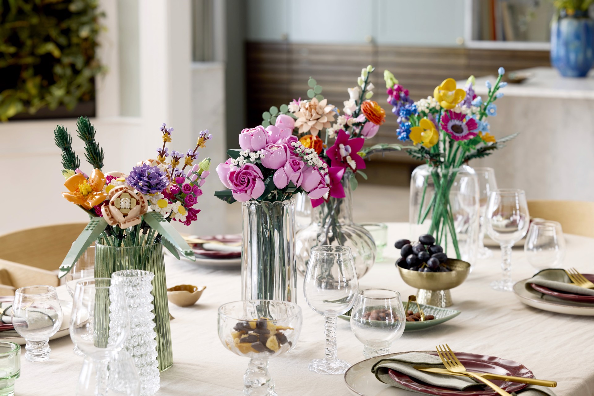Costruisci più fiori: combina questo set da costruzione con altri bouquet di mattoncini (disponibili separatamente) della collezione LEGO® Botanicals per creare una grande esposizione floreale su misura
