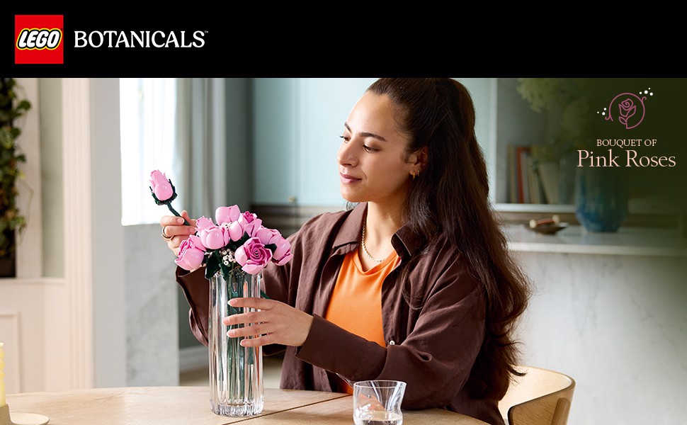 Kit di bouquet costruibile: coltiva la gioia creativa con questo set di costruzione Bouquet di rose rosa LEGO® Botanicals per adulti, ricco di dettagli fioriti