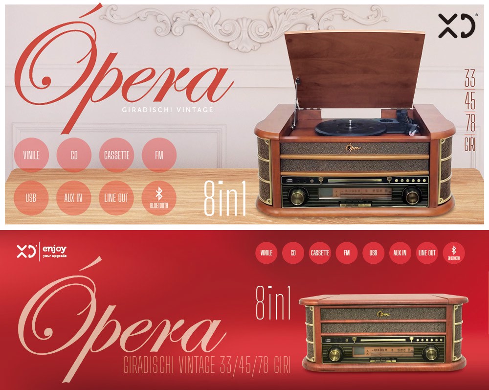 XD Enjoy XDAIS227. Colore del prodotto: Legno, Materiale della scocca: MDF, Velocità giradischi: 33,45,78 Giri/min. Tipo di display: LED. Potenza in uscita (RMS): 10 W, Impedenza: 8 Ω. Tipo alimentazione: AC, Adattatore di voltaggio input AC: 100 - 240 V, Adattatore di frequenza AC: 50/60 Hz. Larghezza: 513 mm, Profondità: 220 mm, Altezza: 347 mm