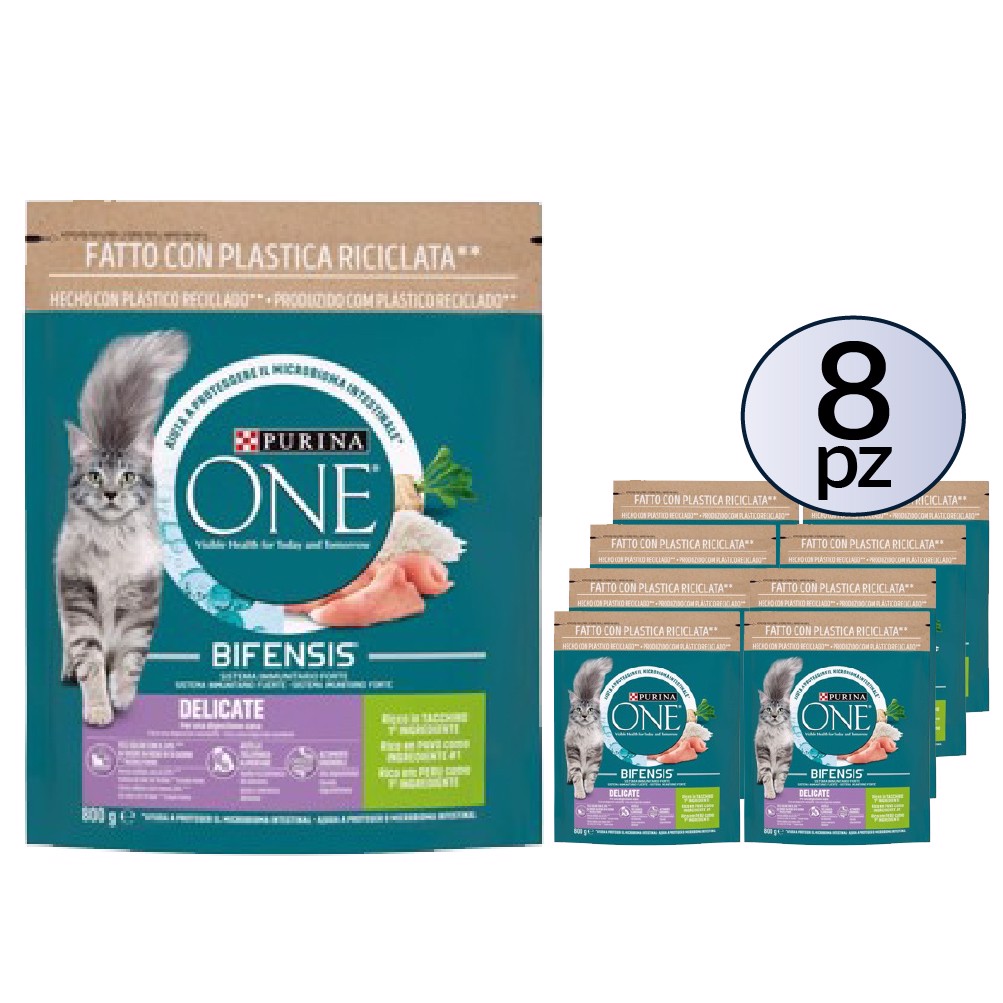 SALUTE VISIBILE OGGI E DOMANI PURINA ONE Delicate è specificamente formulato per la salute e il benessere dei gatti con digestione sensibile e appetito delicato. L'equilibrio del microbioma intestinale è essenziale per la salute del tuo gatto. Ha un impatto diretto sul suo sistema immunitario. Il microbioma è un ecosistema formato da miliardi di microorganismi che vivono nell'intestino e che sono unici per ogni gatto. L'equilibrio dei microorganismi è importante per garantire un effetto positivo sulla salute digestiva del tuo gatto, sul suo sistema immunitario e sul suo benessere generale.