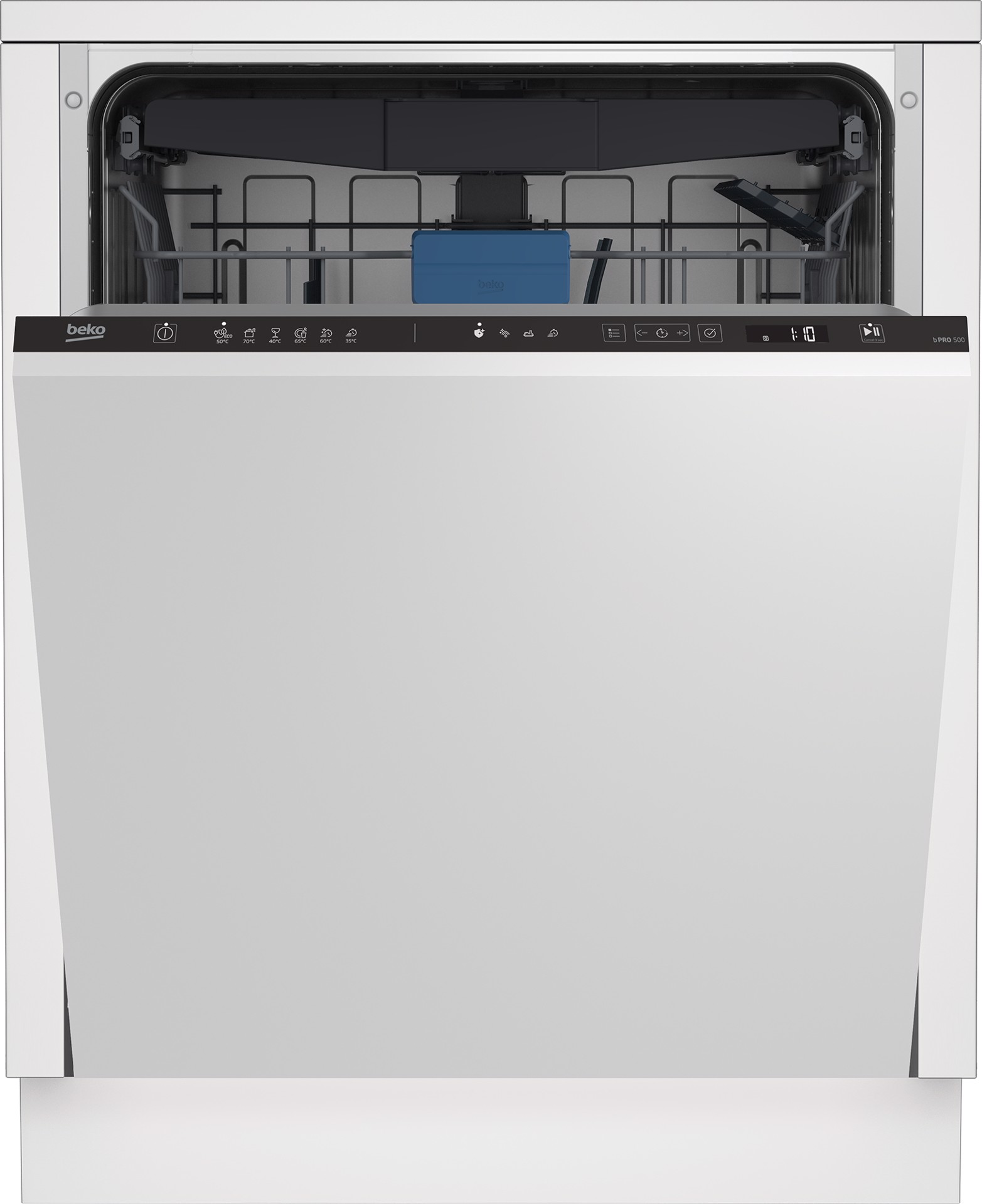 Beko b300 BDIN36550: Lavastoviglie a Scomparsa Totale Classe B, 60 cm, 15 Coperti. Posizionamento dell'apparecchio: A scomparsa totale, Dimensione: Dimensione massima (60 cm), Colore pannello di controllo: Nero. Numero di coperti: 15 coperti, Classe emissione rumore: B, Emissione acustica: 44 dB. Classe efficienza energetica: B, Consumo di acqua per ciclo: 9,9 L, Consumo energetico per 100 cicli: 65 kWh. Larghezza: 598 mm, Profondità: 550 mm, Altezza: 818 mm. Tecnologie Beko (lavaggio stoviglie): Fast+, TrayWash™ System, SelfDry, SteamGloss®, SaveWater
