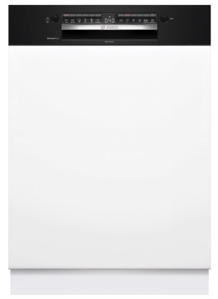 Bosch Serie 4 SMI4HCB07E. Posizionamento dell'apparecchio: A scomparsa parziale, Dimensione: Dimensione massima (60 cm), Colore pannello di controllo: Nero. Numero di coperti: 14 coperti, Classe emissione rumore: B, Emissione acustica: 42 dB. Regolazione piedini: 6 cm, Applicazioni per il controllo supportate: Bosch Home Connect. Classe efficienza energetica: C, Consumo di acqua per ciclo: 9 L, Consumo energetico per 100 cicli: 75 kWh. Larghezza: 598 mm, Profondità: 573 mm, Altezza: 815 mm
