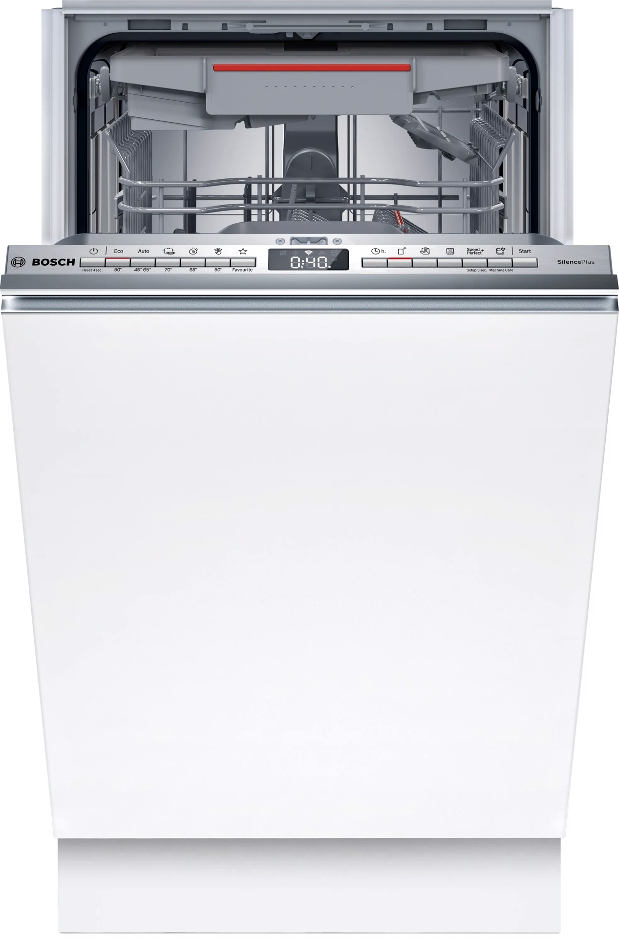 Bosch Serie 4 SPV4EMX17E. Posizionamento dell'apparecchio: A scomparsa totale, Dimensione: Compatta (45 cm), Colore pannello di controllo: Acciaio inox. Numero di coperti: 10 coperti, Classe emissione rumore: B, Emissione acustica: 44 dB. Regolazione piedini: 6 cm, Applicazioni per il controllo supportate: Home Connect. Classe efficienza energetica: B, Consumo di acqua per ciclo: 8,7 L, Consumo energetico per 100 cicli: 51 kWh. Larghezza: 448 mm, Profondità: 550 mm, Altezza: 815 mm