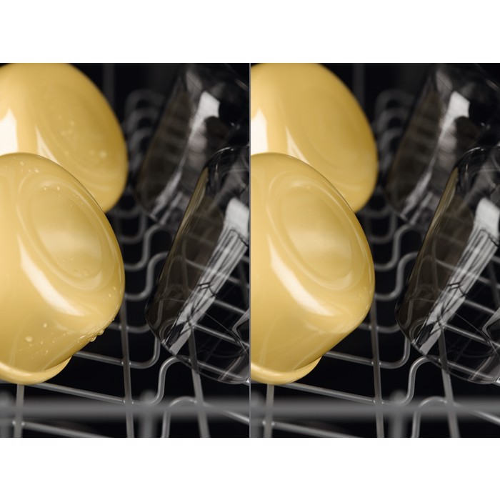 La serie 800 è così potente da rimuovere completamente residui bruciati e incrostati usando solo 8,4 L d'acqua. I cestelli flessibili scorrevoli hanno file pieghevoli e supporti per i bicchieri.