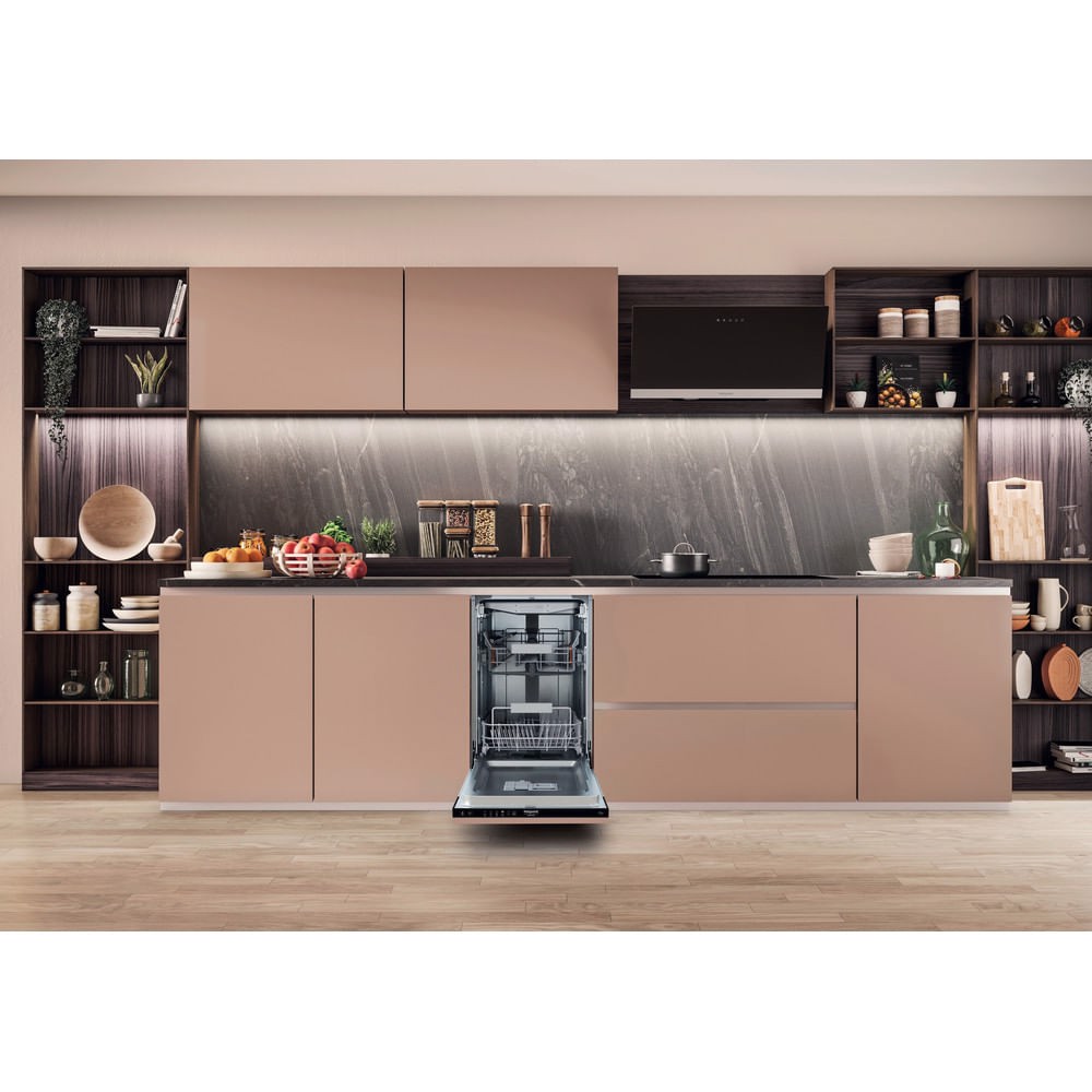 Caratteristiche di questa lavastoviglie da incasso Hotpoint Ariston: modello slim di piccole dimensioni con un gran numero di coperti, per avere tutto lo spazio necessario, all’interno e all’esterno della lavastoviglie. Classe di efficienza energetica D. Ridottissimo consumo d'acqua e design ergonomico e compatto. Piedini regolabili in altezza per una stabilità perfetta su ogni superficie.