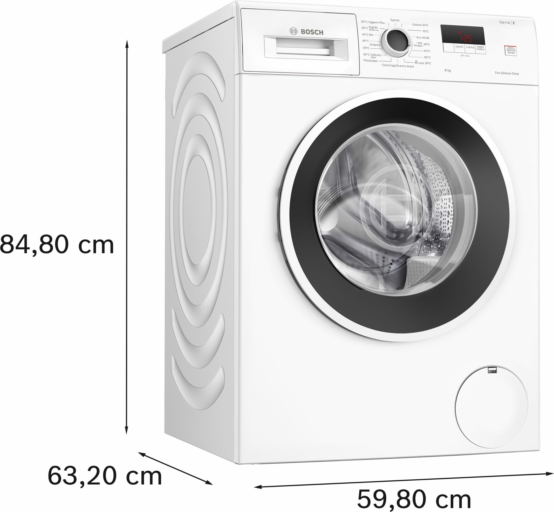Serie 2 WGE03200IT Lavatrice a carica frontale 8kg 1200g/min Bianco Classe A, Caricamento frontale, 8 kg, B, 71 dB, 1200 Giri/min, A