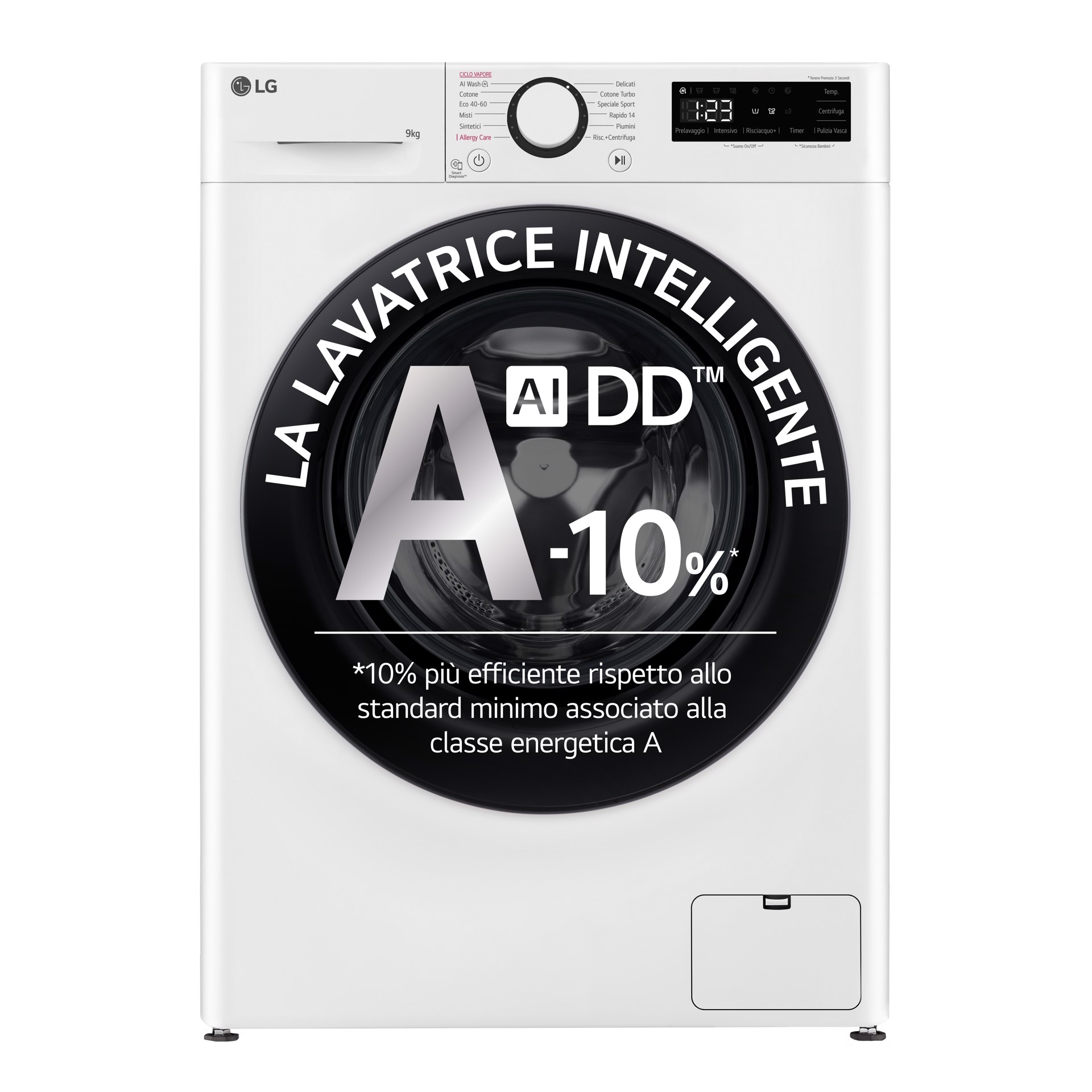 LG F4R3009NSWB Lavatrice 9kg AI DD, Classe A-10%, 1400 giri, Vapore, AI Wash
