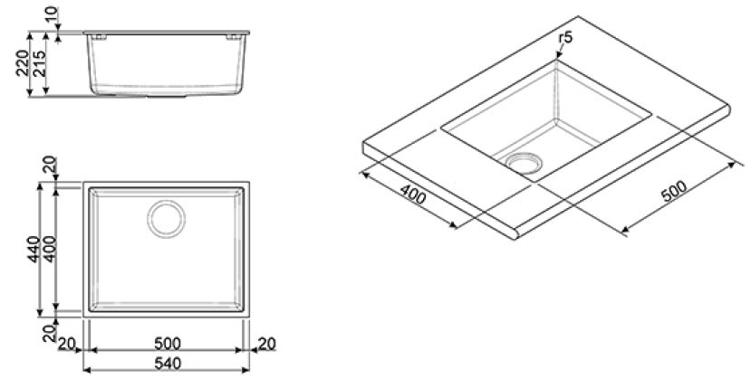 - dotazione: troppopieno, piletta 3.5”, guarnizioni, morsetti di fissaggio e sifone con attacco lavastoviglie.