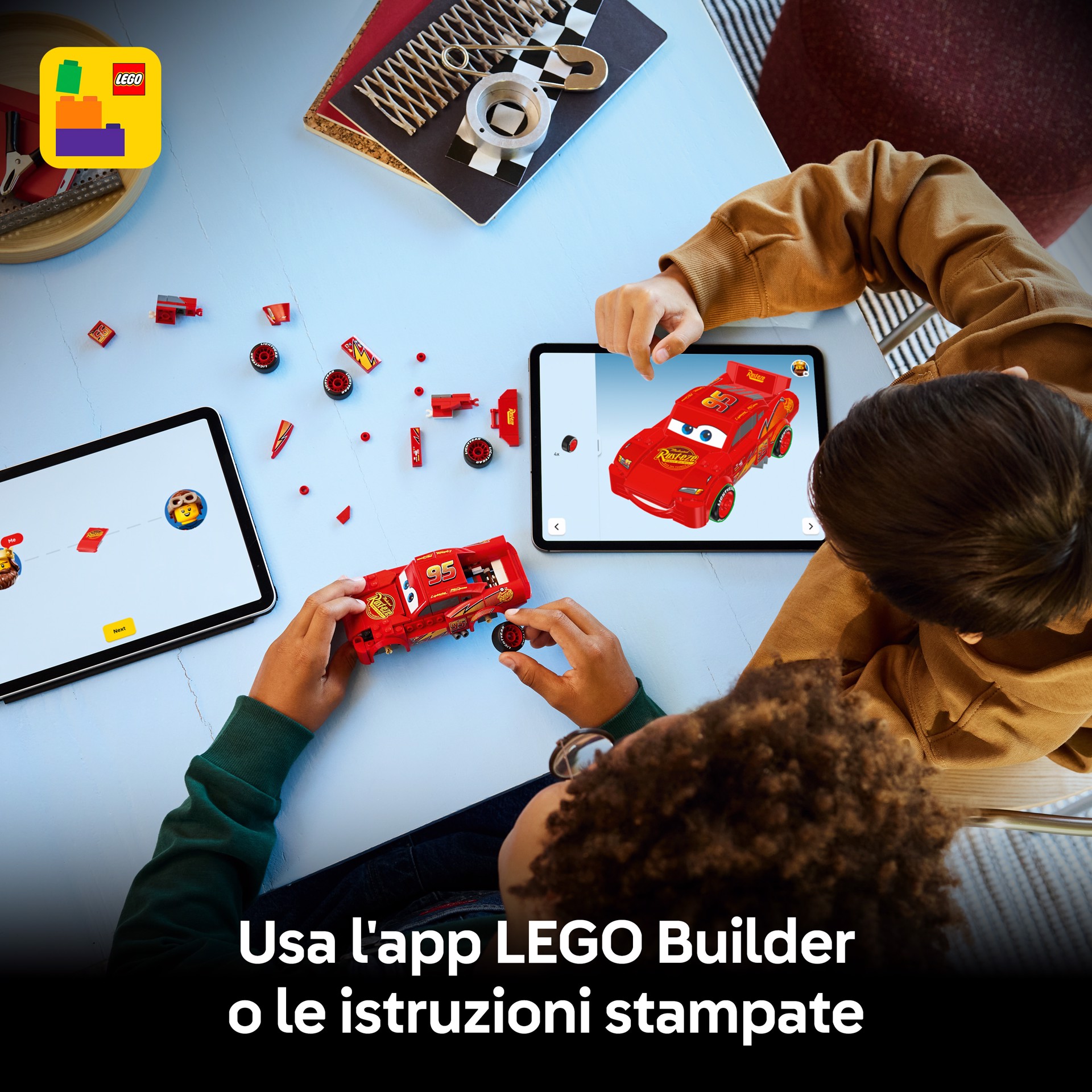 Il modello Disney è dotato del famoso fulmine giallo e arancione di Saetta McQueen, il numero 95, il logo dello sponsor Rust-Eze, gli pneumatici con stampa “Lightyear” e i suoi famosi adesivi dei fari. L’auto giocattolo è anche l’unico modello Speed Champions con un telaio dettagliato che arricchisce ancora di più il divertimento dei bambini.