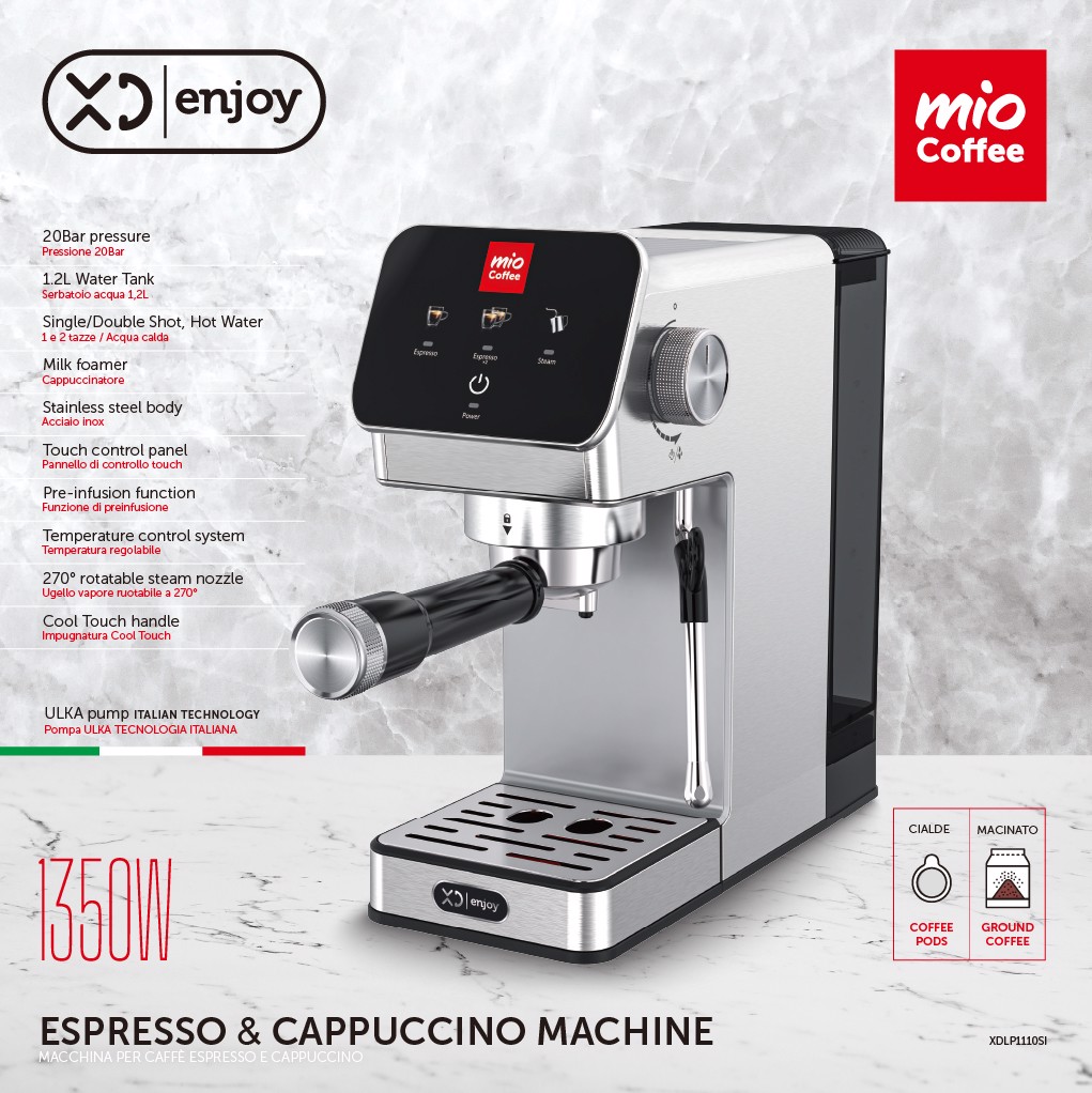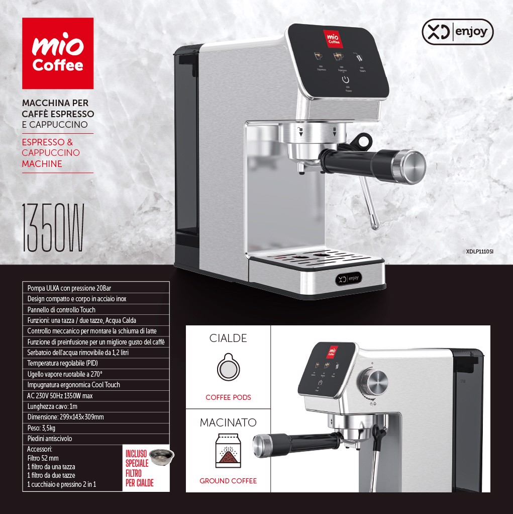 XD Enjoy Macchina per Caffe a Cialde Espresso e Cappuccino 1350W