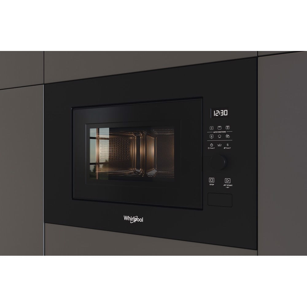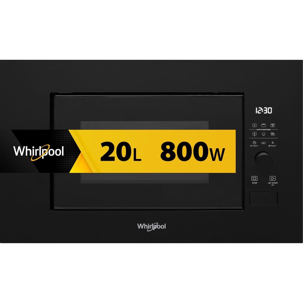 Caratteristiche di questo microonde da incasso Whirlpool: colore nero. Funzione grill. Funzione Jet Defrost per uno sbrinamento eccezionalmente rapido e uniforme.